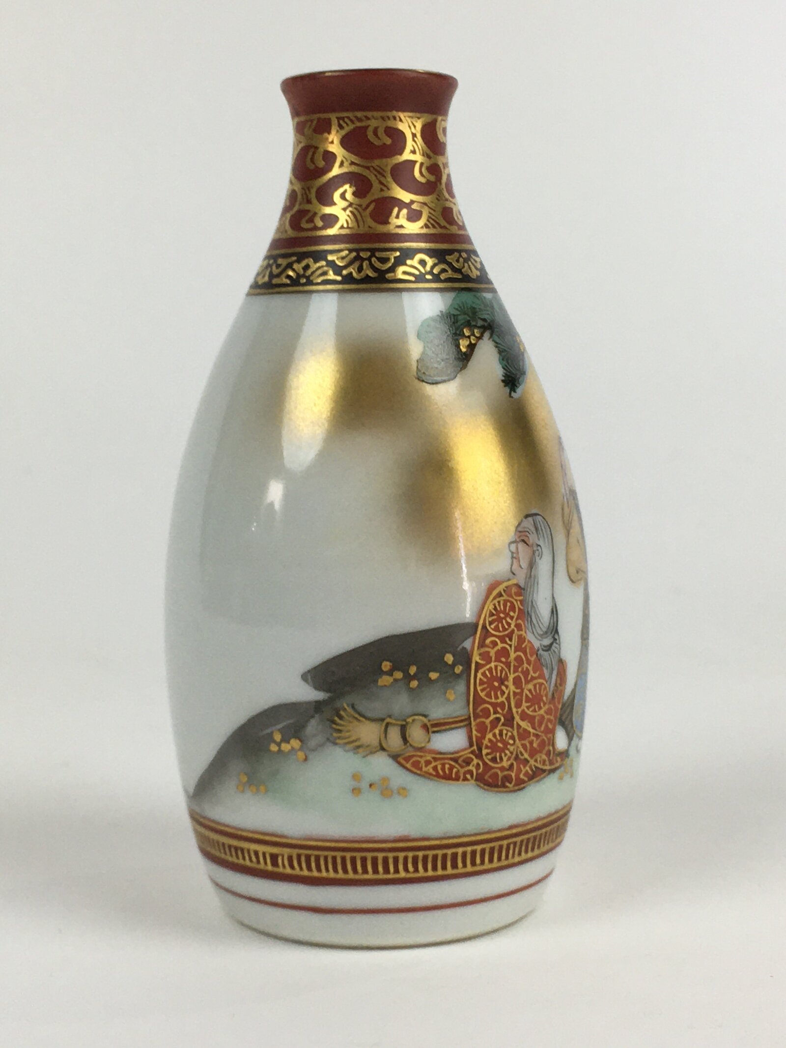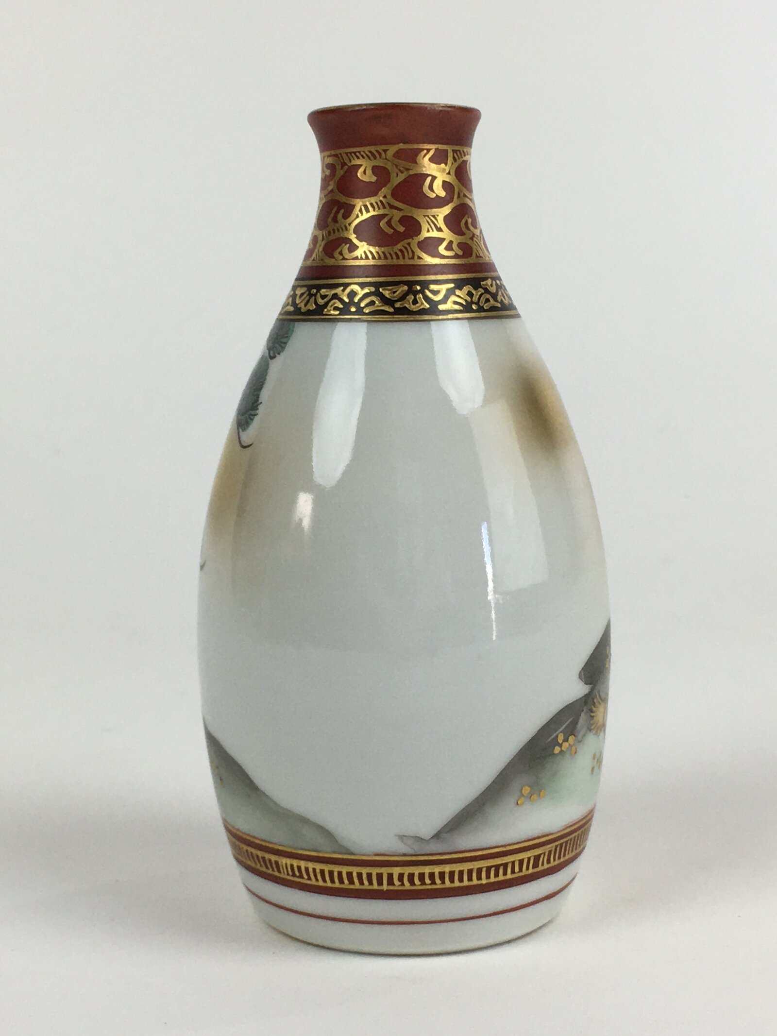Japanese Porcelain Sake Bottle Vtg Kutani Ware Celebration Tokkuri TS403