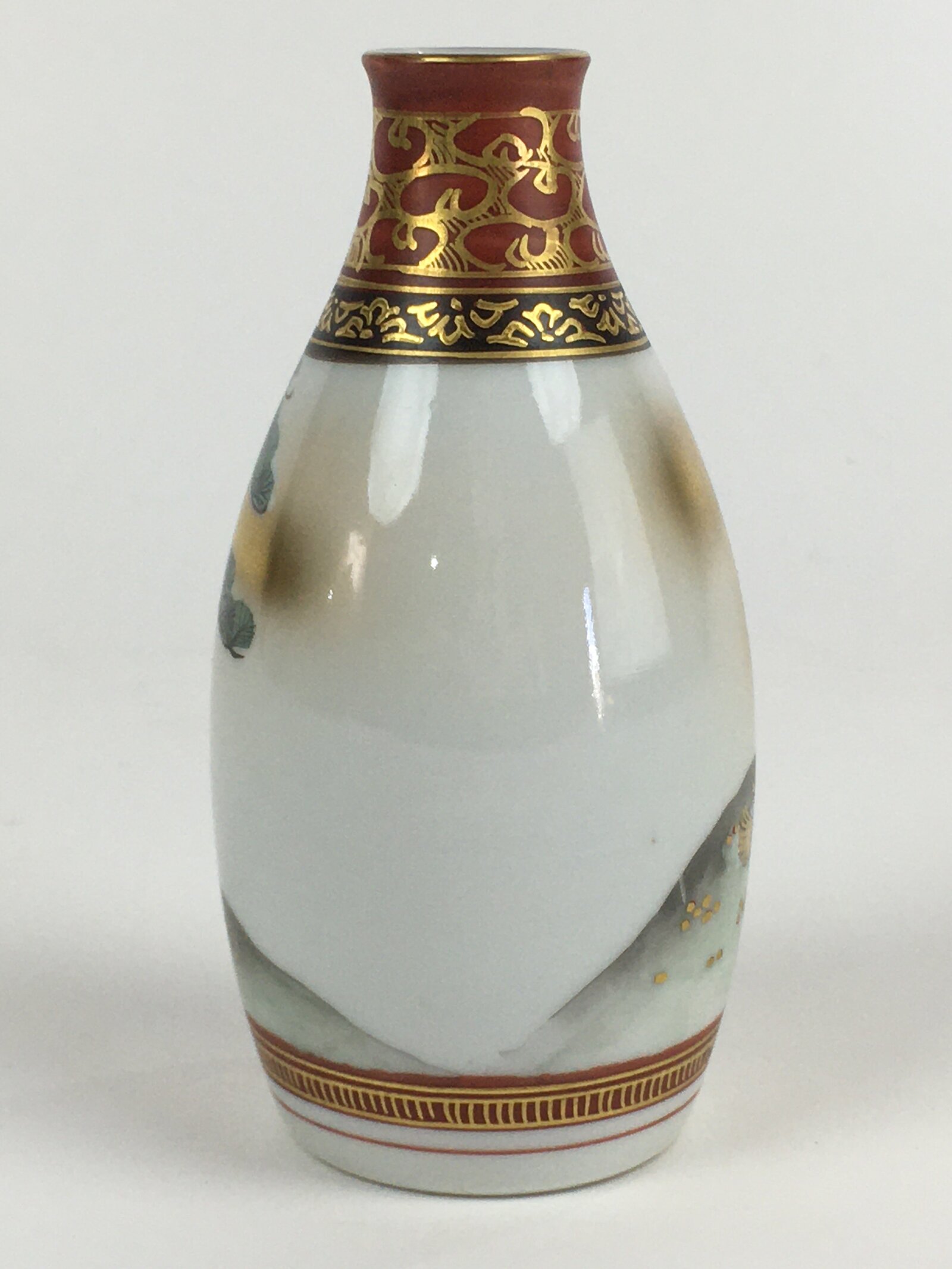 Japanese Porcelain Sake Bottle Vtg Kutani Ware Celebration Tokkuri TS402