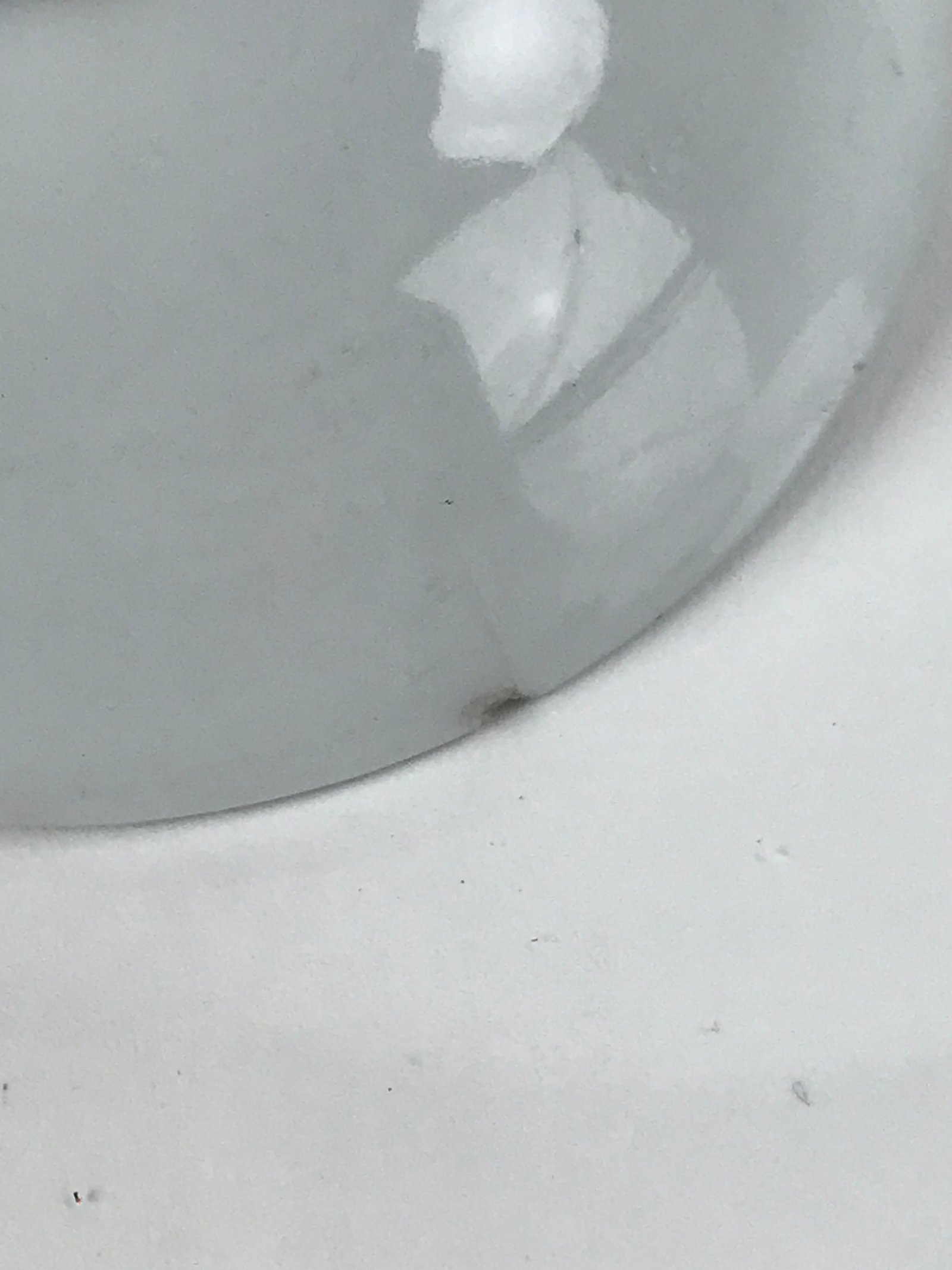 - Good condition considering age. Small chip on rim. Gold paint worn on lip. General imperfections in glaze, shape, and design from production. Wear and tear due to age. Please see the photos carefully.