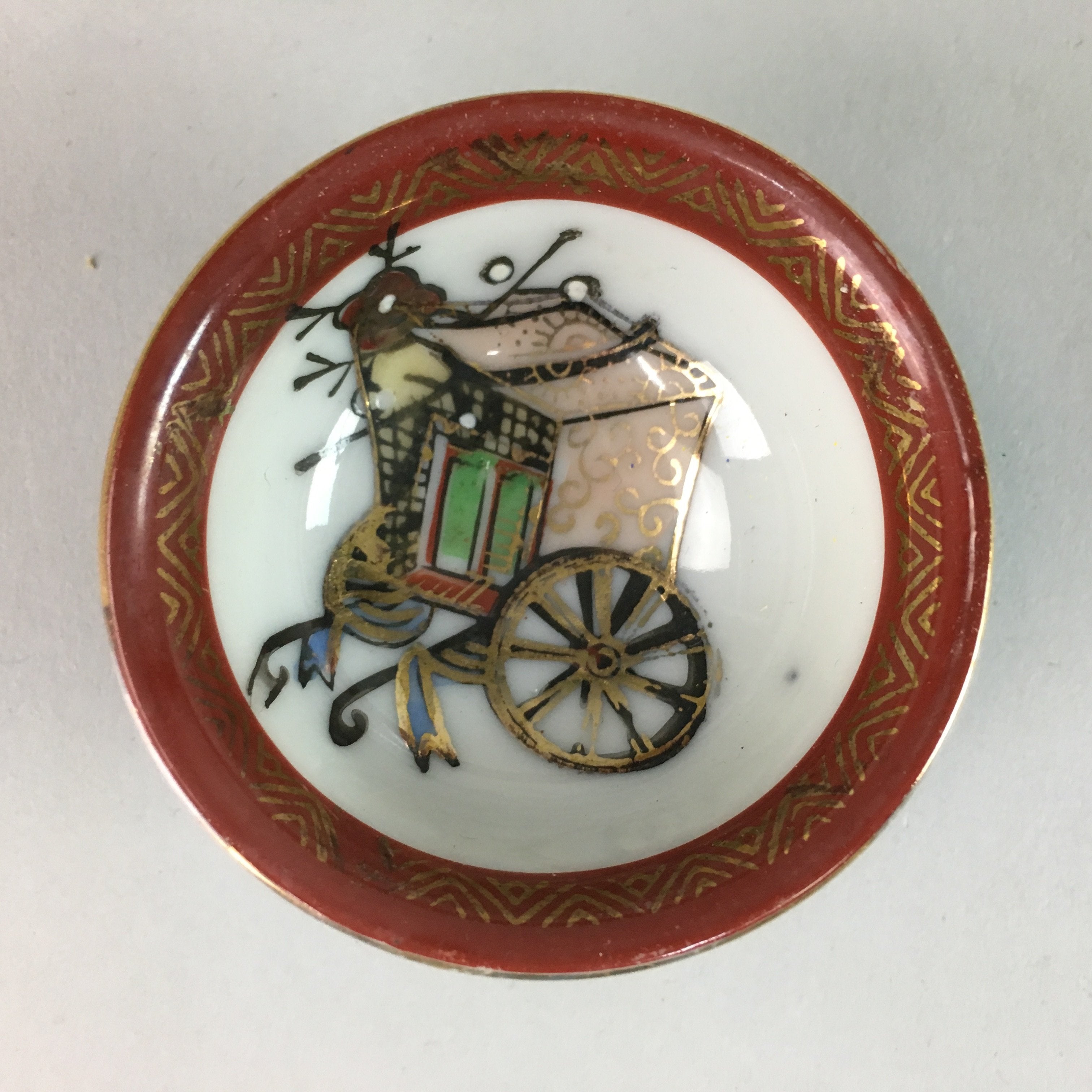 Japanese Porcelain Sake Cup Vtg Guinomi Sakazuki Sometsuke Gold Color GU432