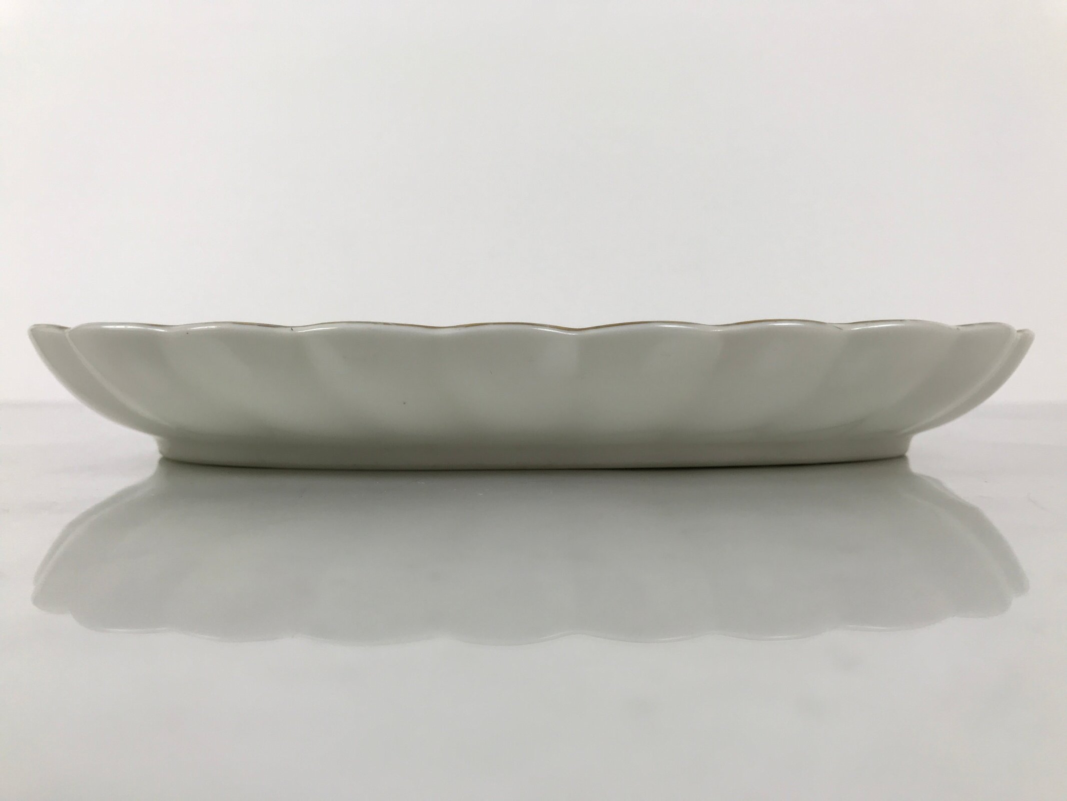 Japanese Porcelain Serving Plate Vtg Oval White Floral Lily Gold Kikuzara Y449