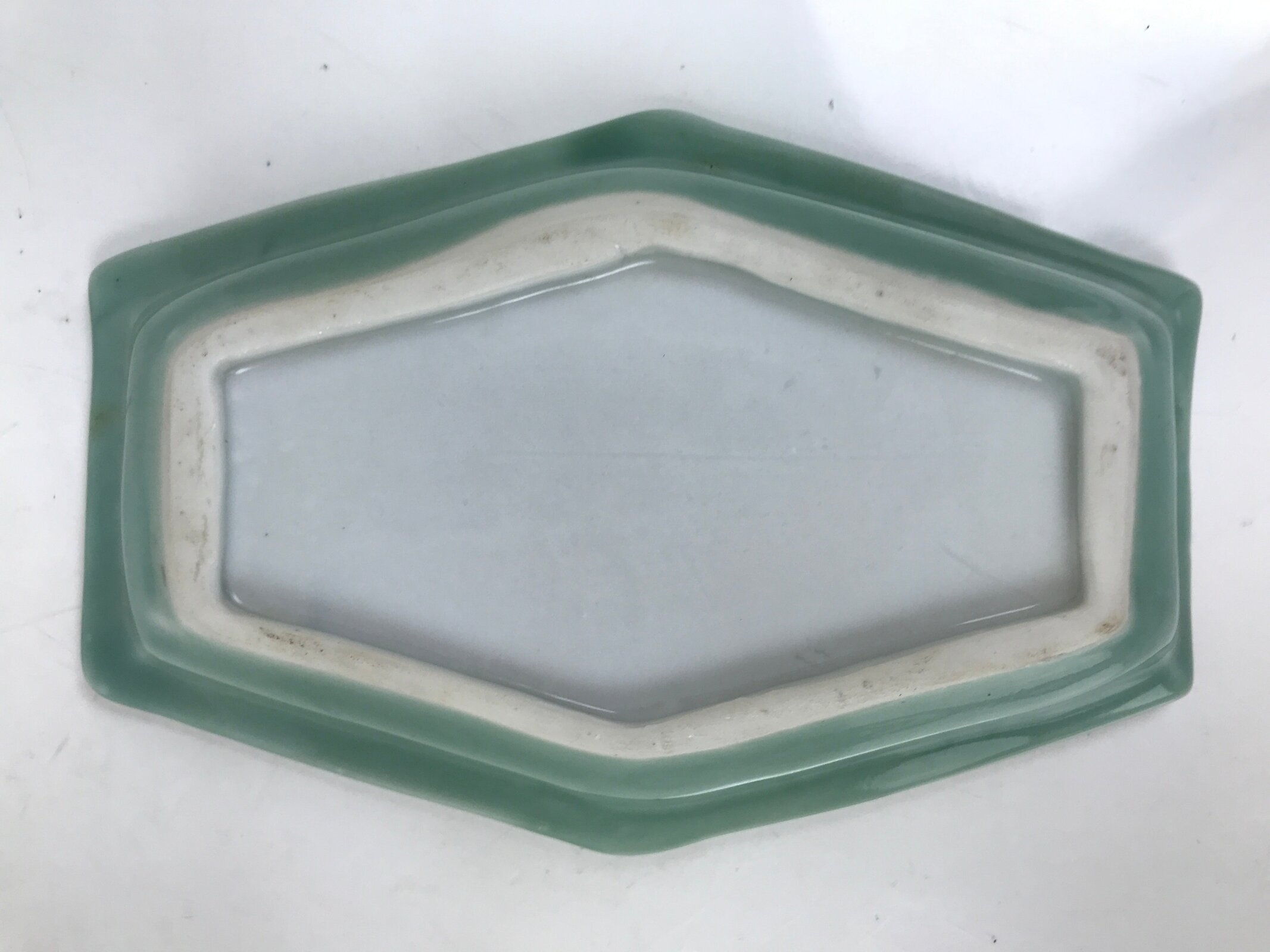 Antique Japanese Porcelain Small Plate Kozara Hexagon Celadon Sayagata Y322