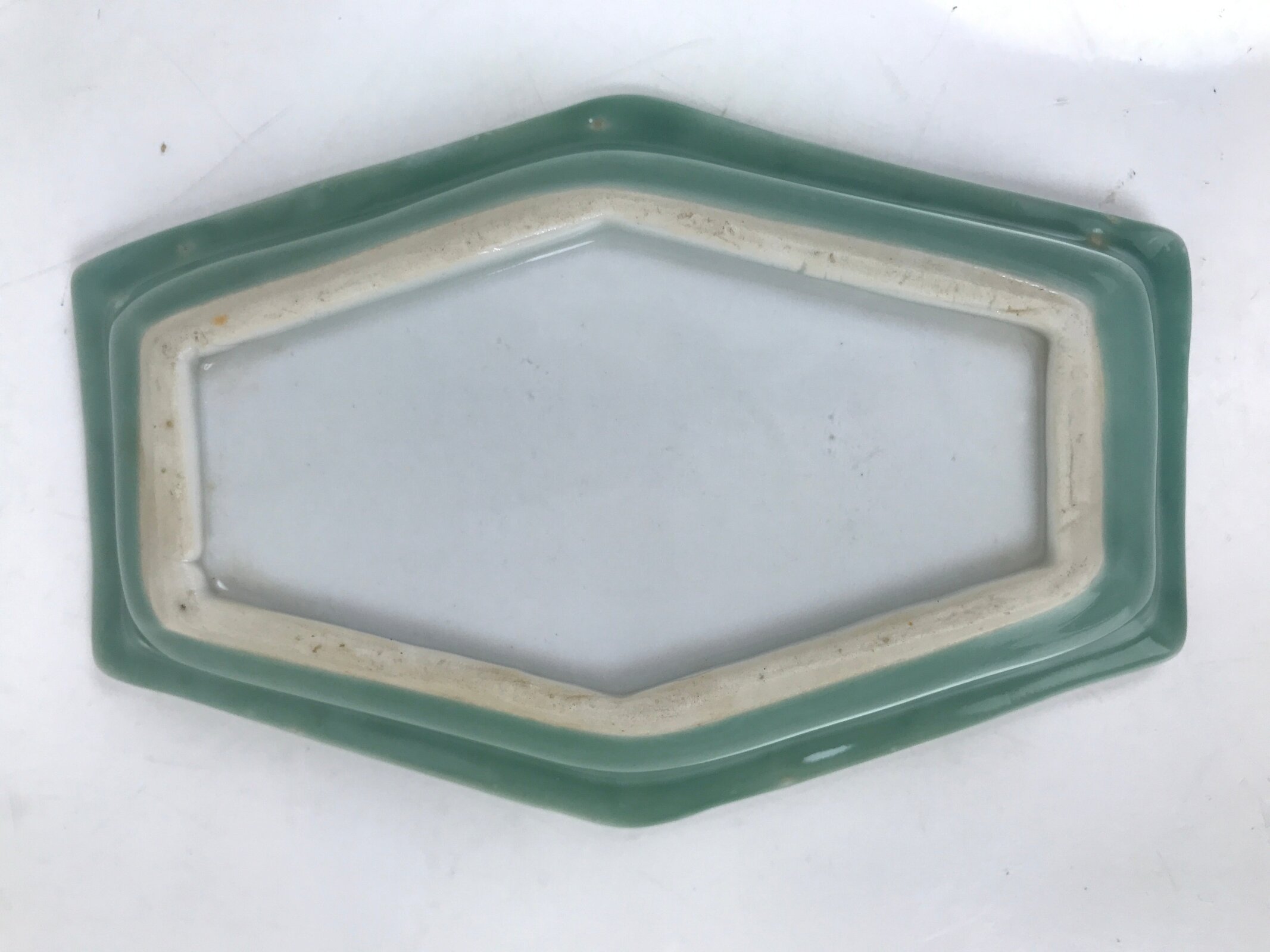 Antique Japanese Porcelain Small Plate Kozara Hexagon Celadon Sayagata Y323