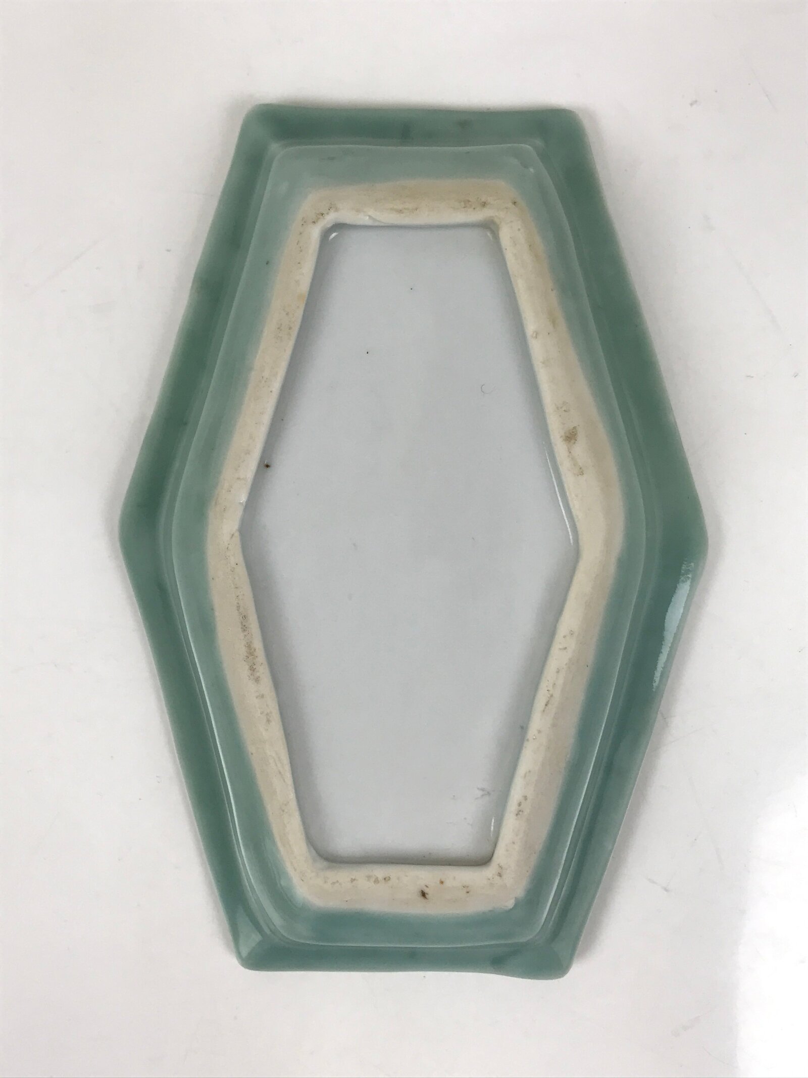 Antique Japanese Porcelain Small Plate Kozara Hexagon Celadon Sayagata Y326