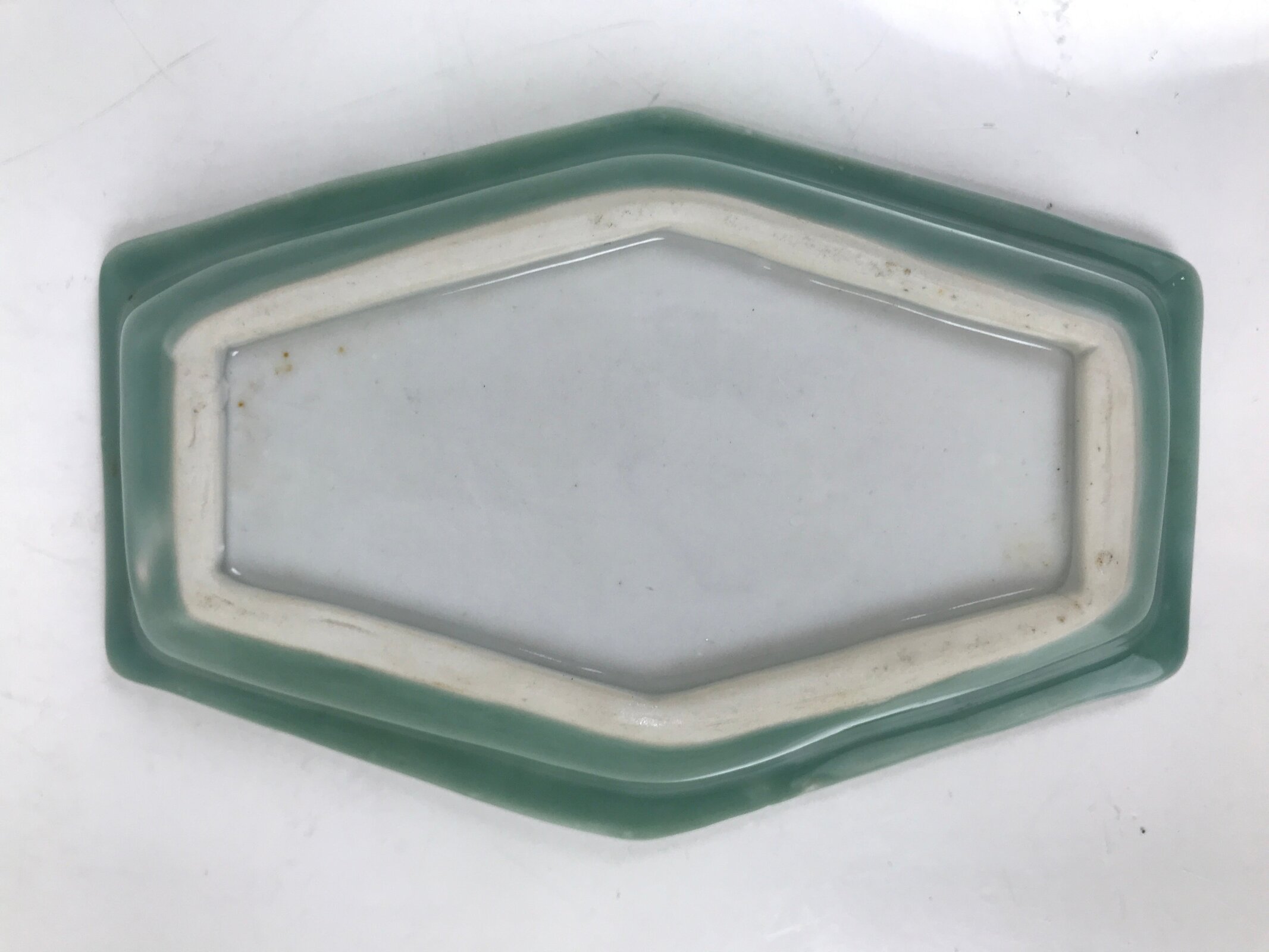 Antique Japanese Porcelain Small Plate Kozara Hexagon Celadon Sayagata Y327