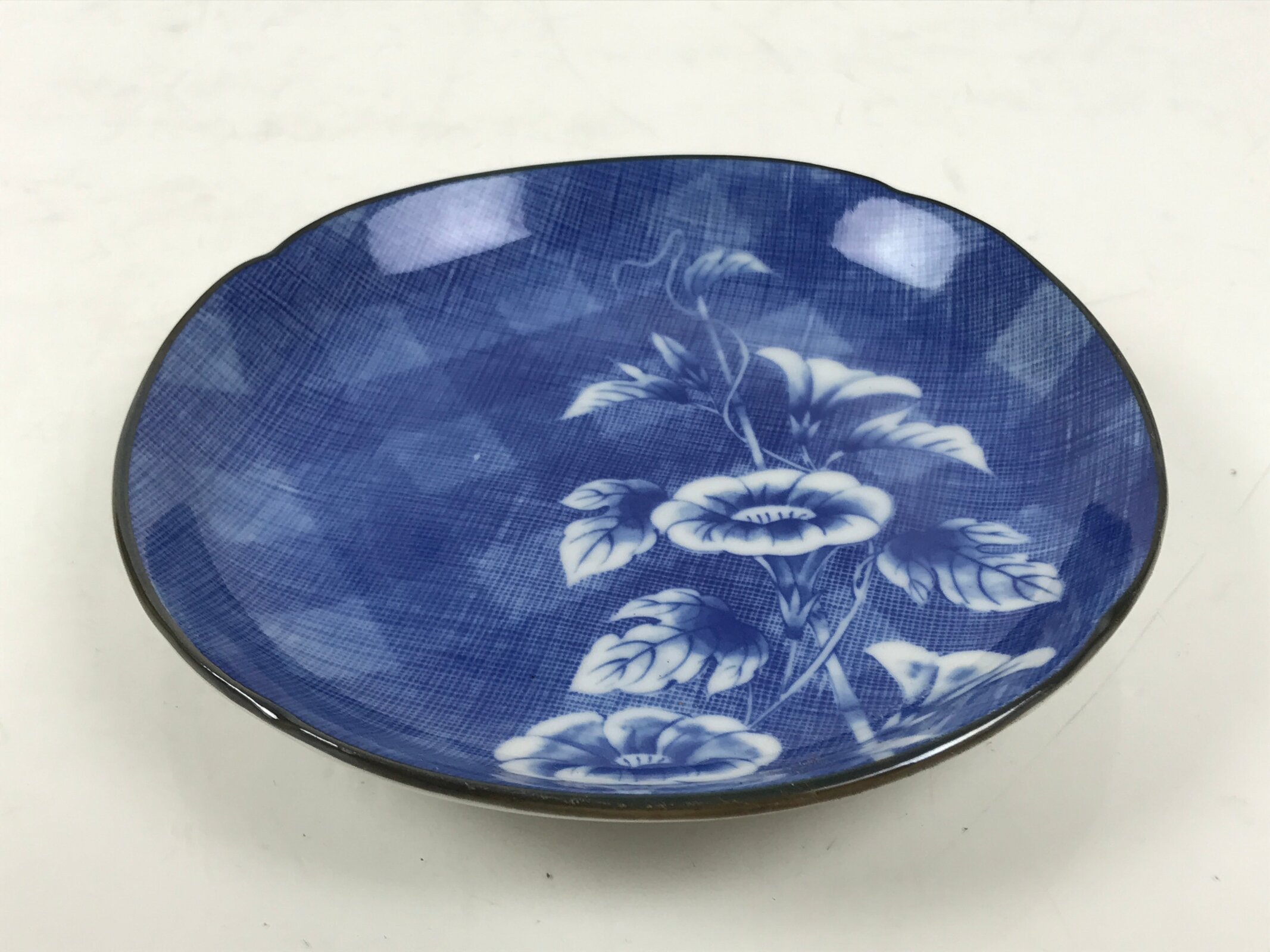 Japanese Porcelain Small Plate Kozara Vtg Sara Morning Glory Asagao Blue Y354