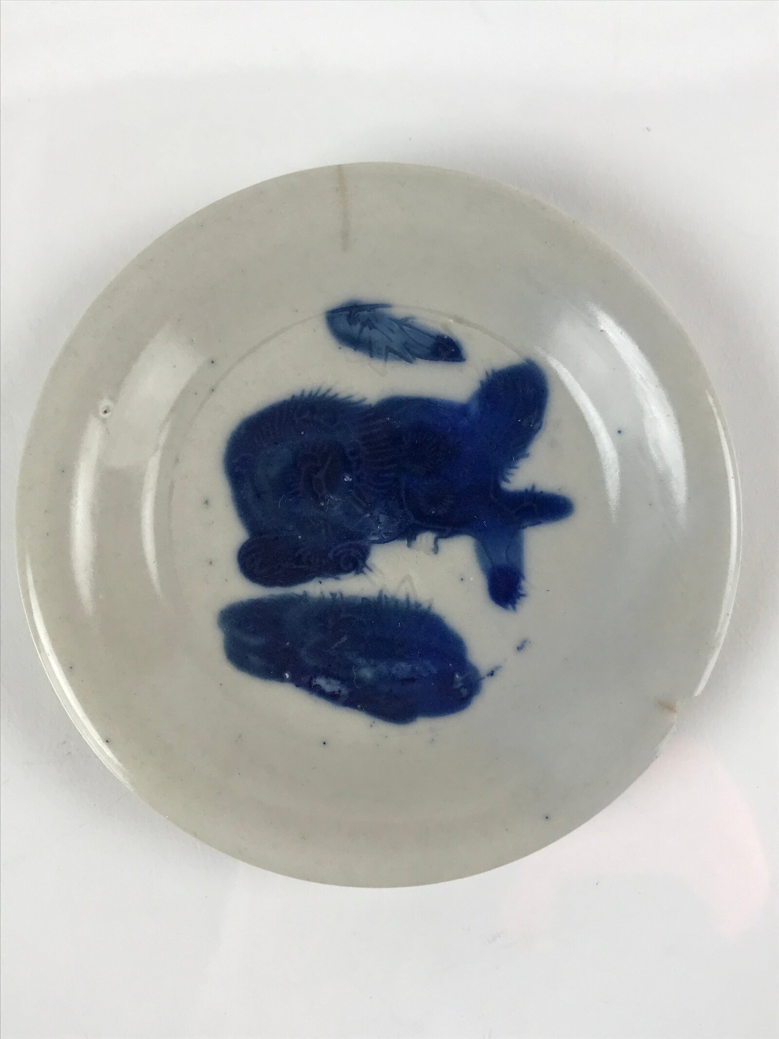 Japanese Porcelain Small Plate Mamezara Vtg Blue Sometsuke Shishi Lion PY798