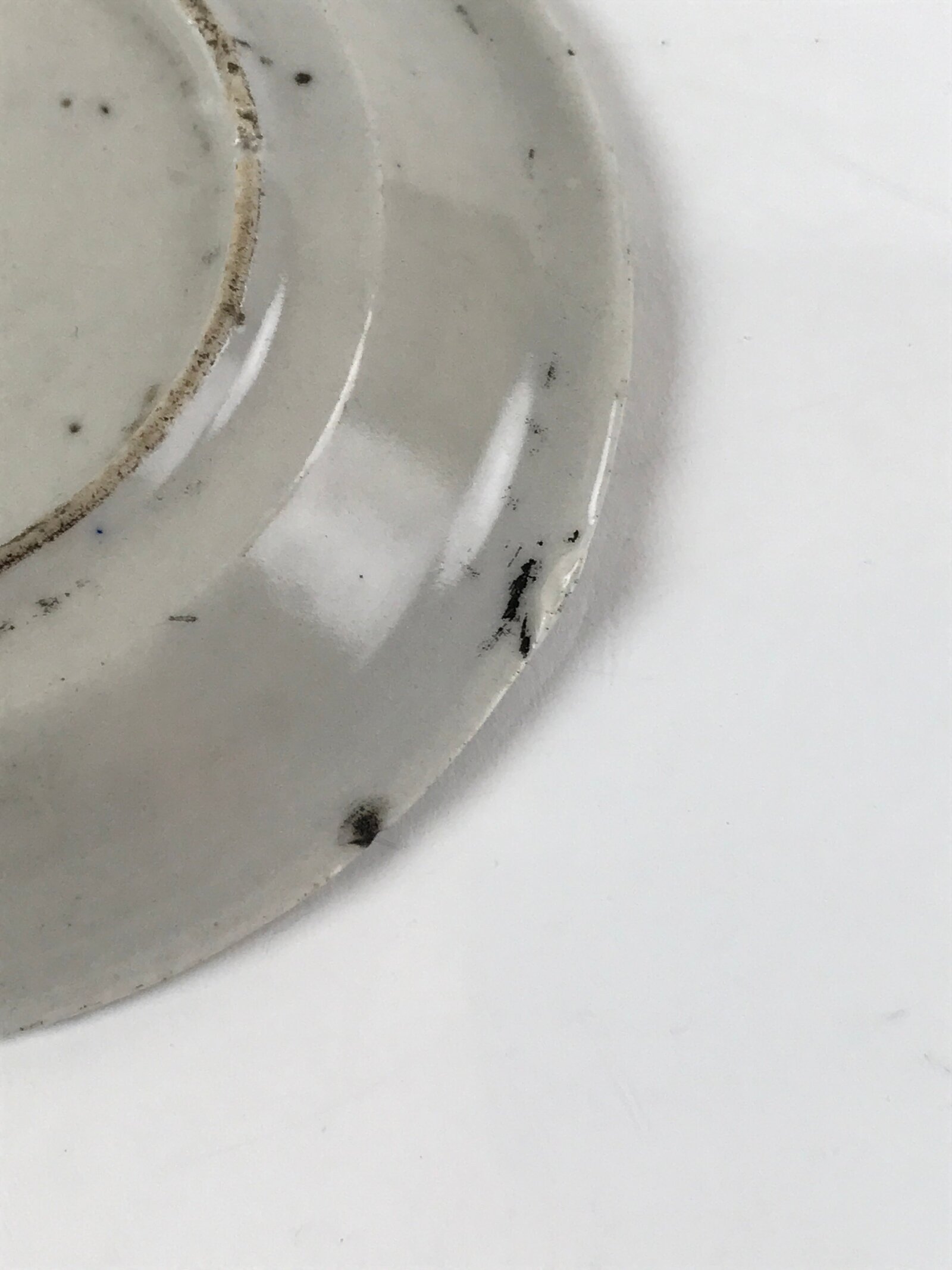 - Good condition considering age. Chips on edges. Rough blemishes in glaze from production (raised unglazed sections). Wear and tear due to age. Please see the photos carefully.
