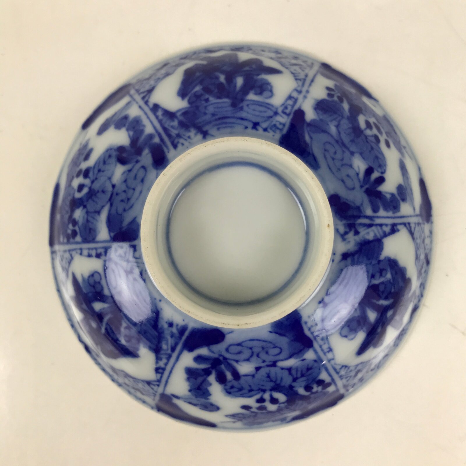 Japanese Porcelain Sometsuke Lidded Bowl Owan Vtg Pottery White Blue Floral Y310
