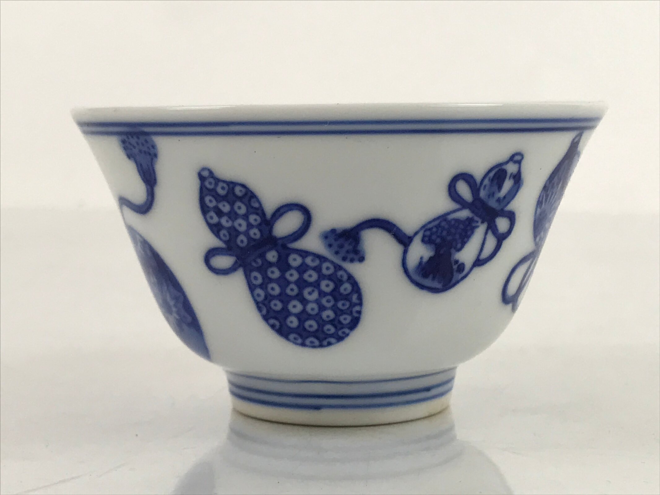 January 23, 2026Japanese Porcelain Sometsuke Teacup Vtg Hyotan Gourd White Blue Yunomi TC438
