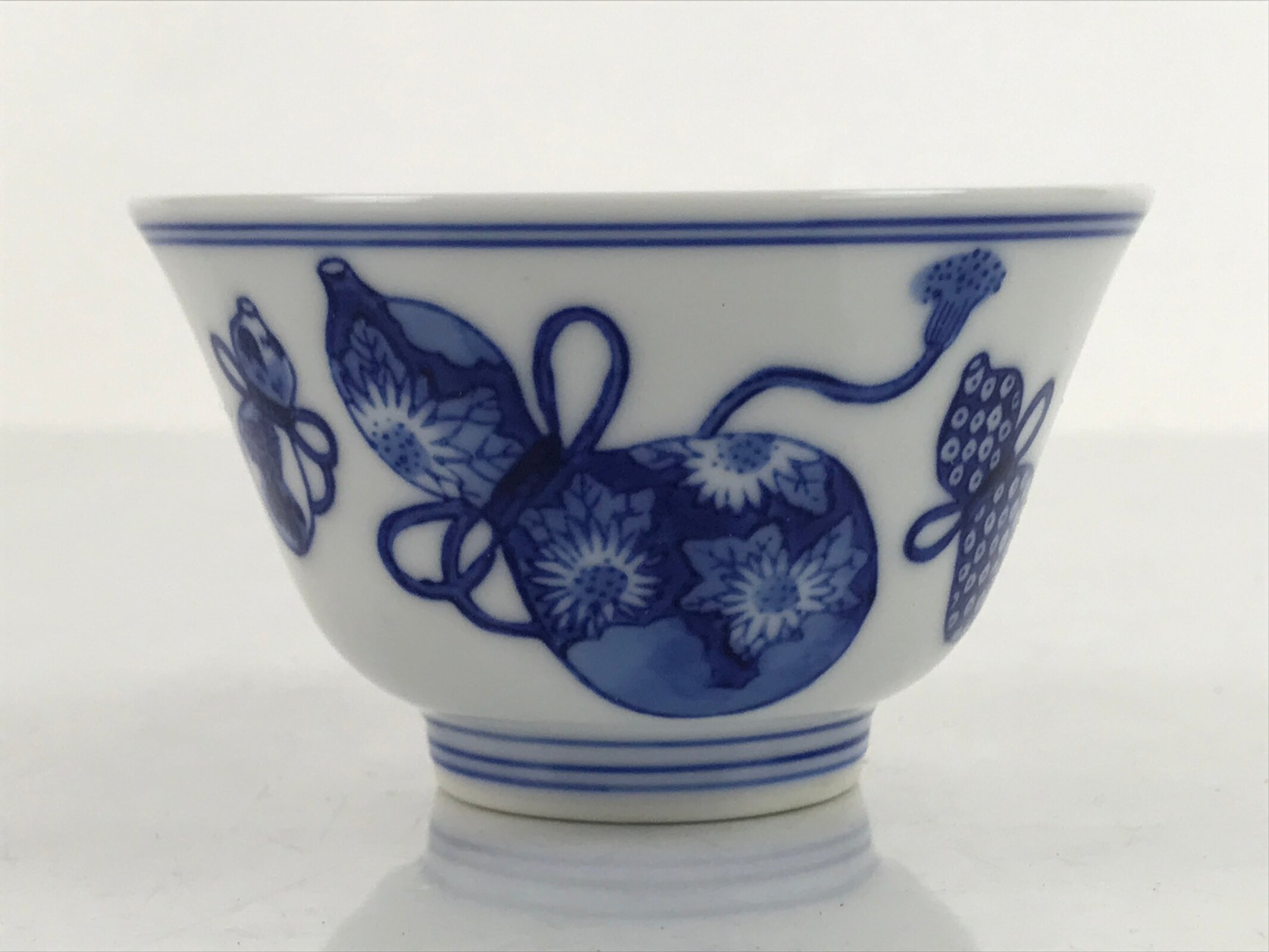 January 23, 2026Japanese Porcelain Sometsuke Teacup Vtg Hyotan Gourd White Blue Yunomi TC439