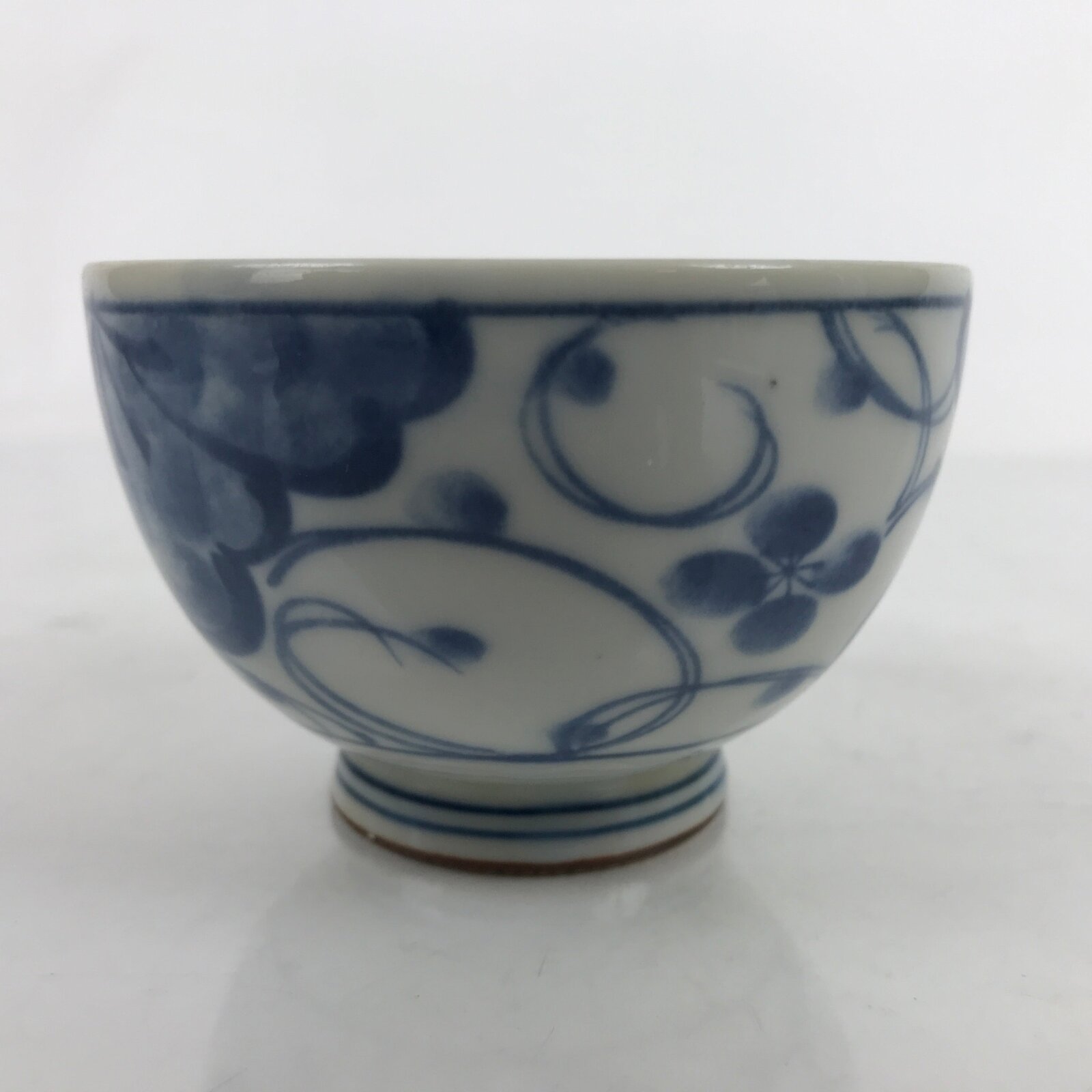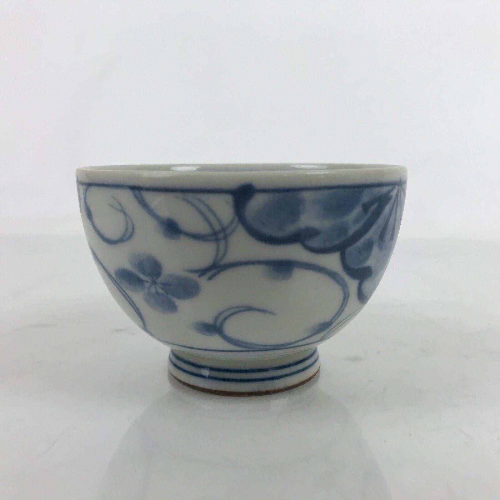Japanese Porcelain Sometsuke Teacup Vtg White Blue Floral Sencha Yunomi TC451