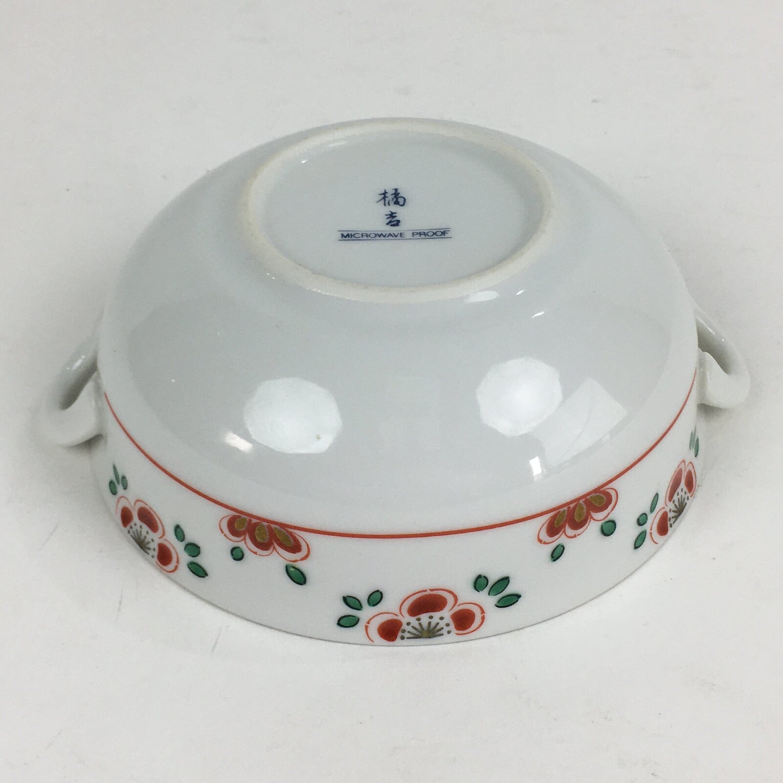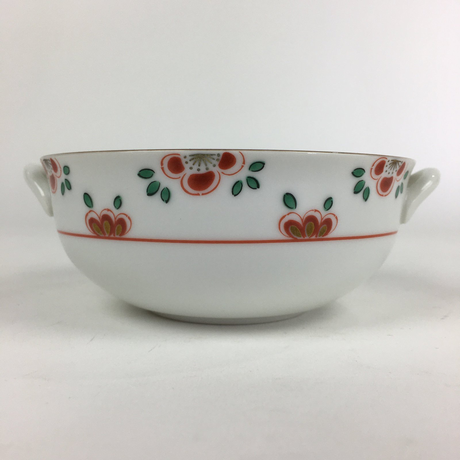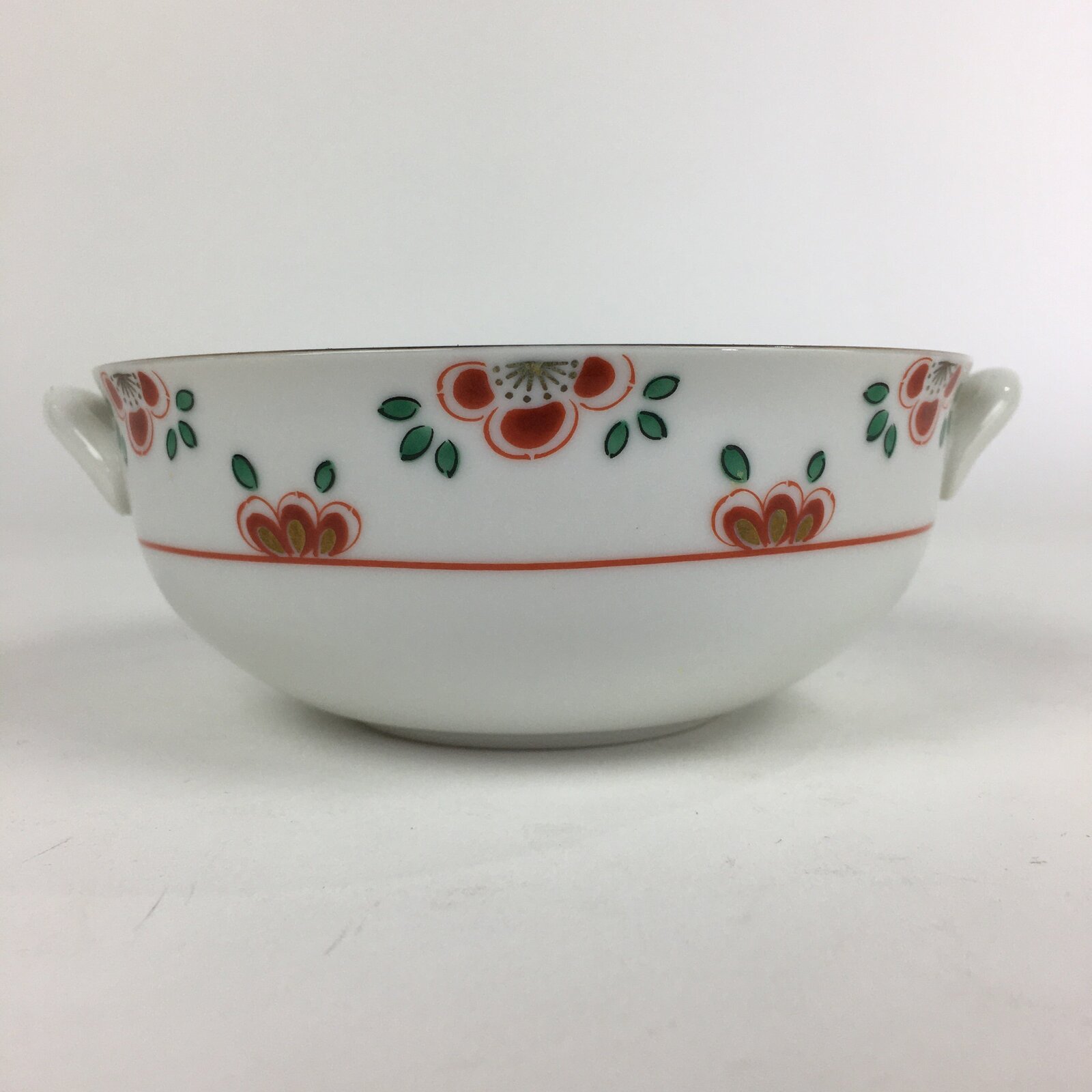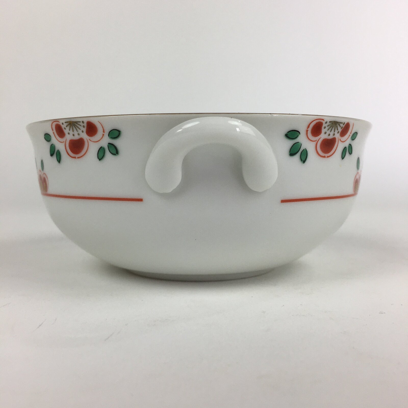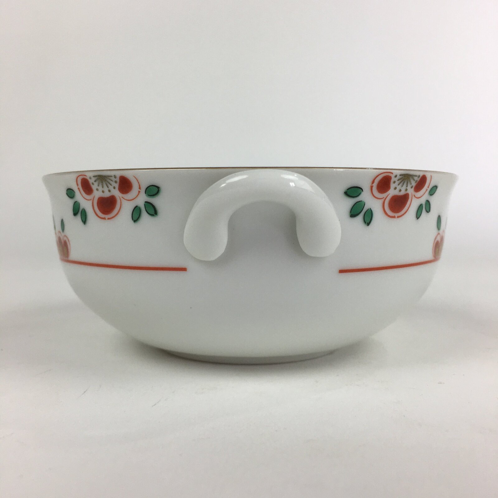 Japanese Porcelain Soup Bowl Vtg Tachikichi Round Handles Flower PP928