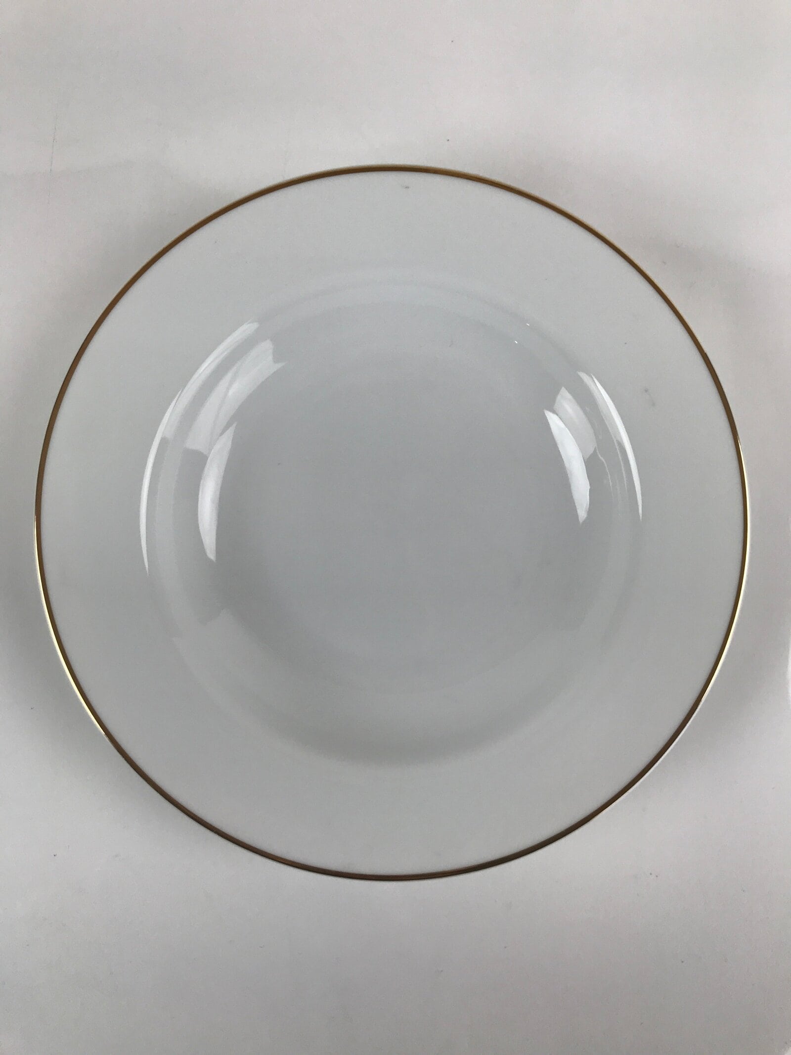 Japanese Porcelain Soup Pasta Bowl Vtg Simple Round Plate White Gold Rim PY830