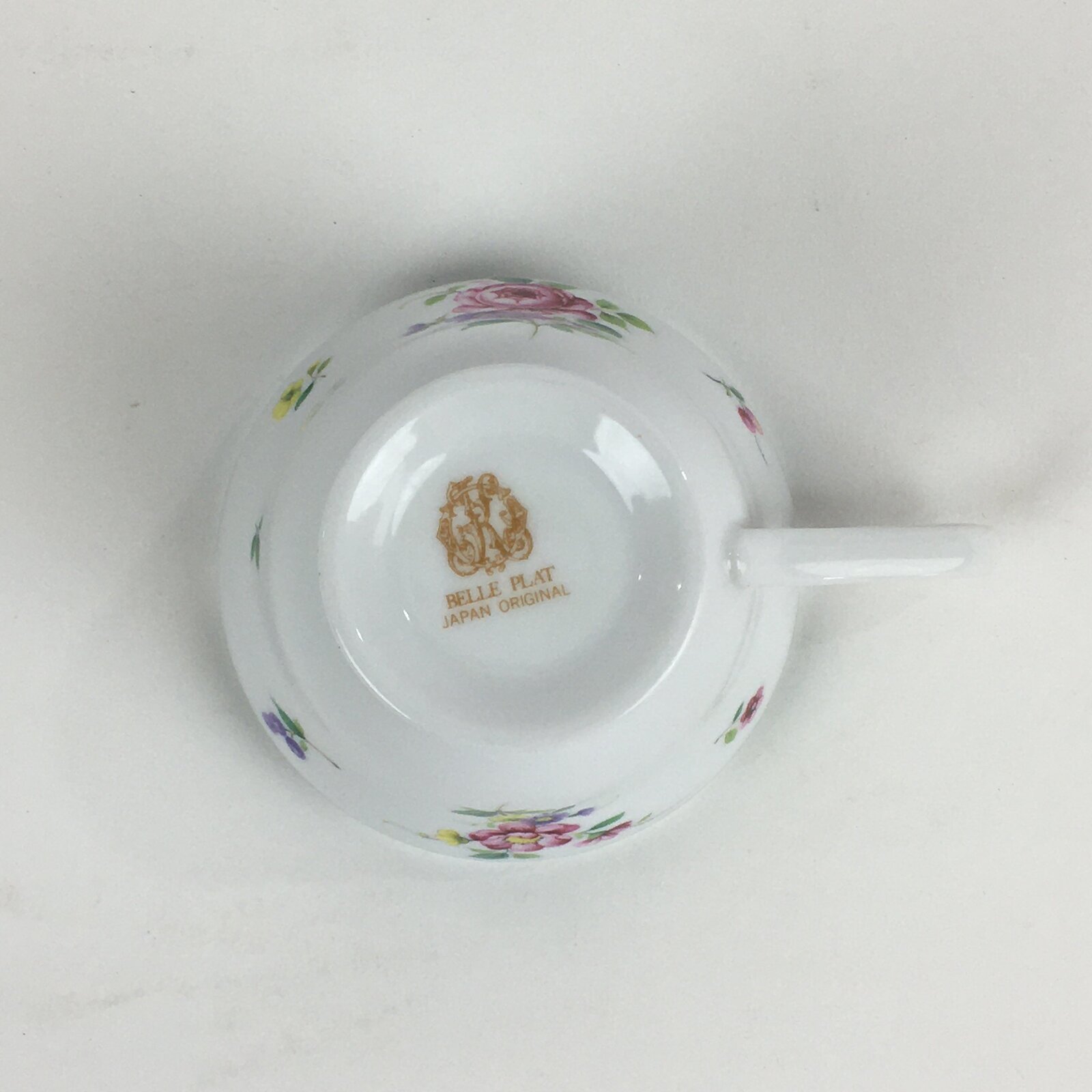 Japanese Porcelain Teacup Vtg Belle Plat Japan Flower Pattern White PP919