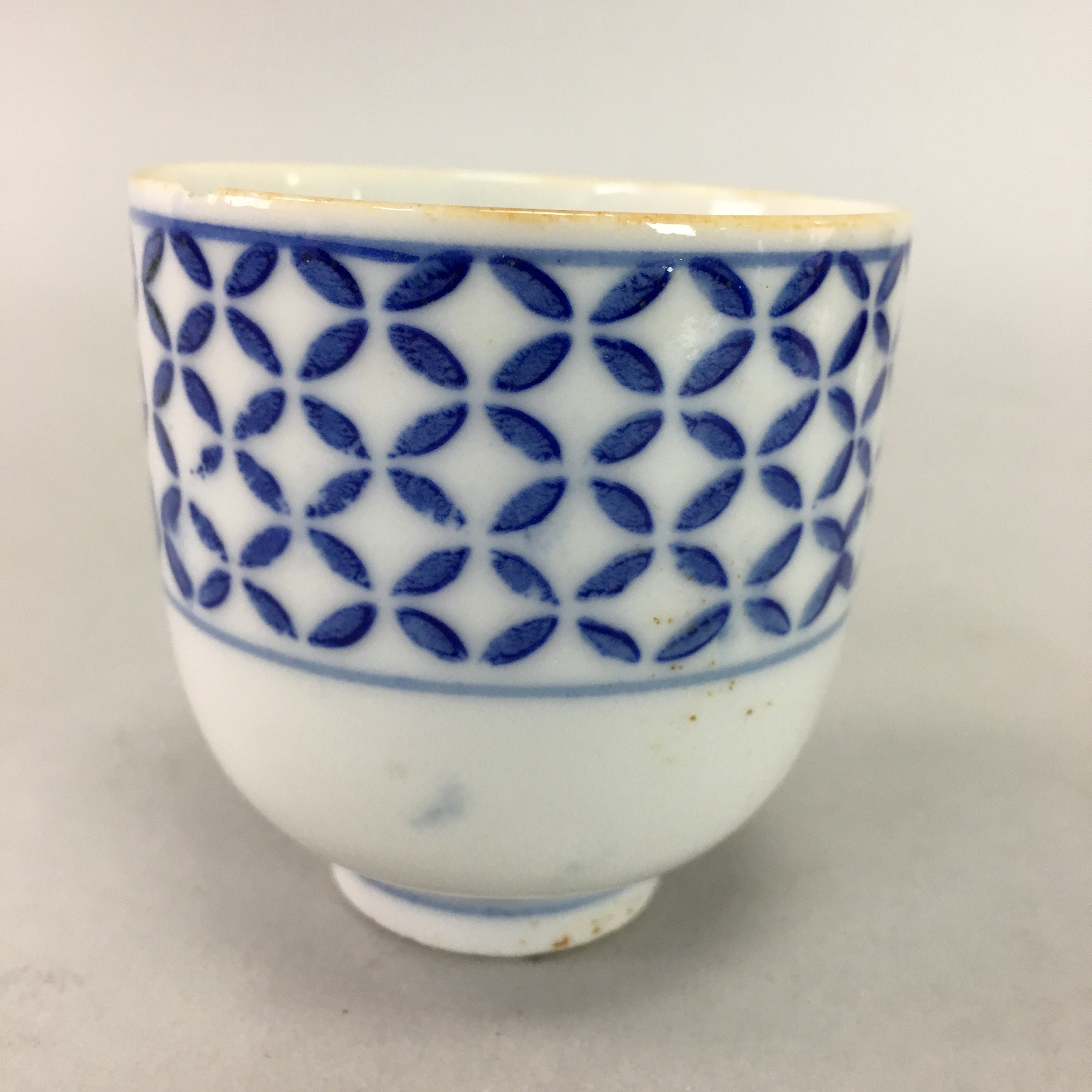 Japanese Porcelain Teacup Vtg Yunomi Sometsuke Blue White Shippo Sencha TC11