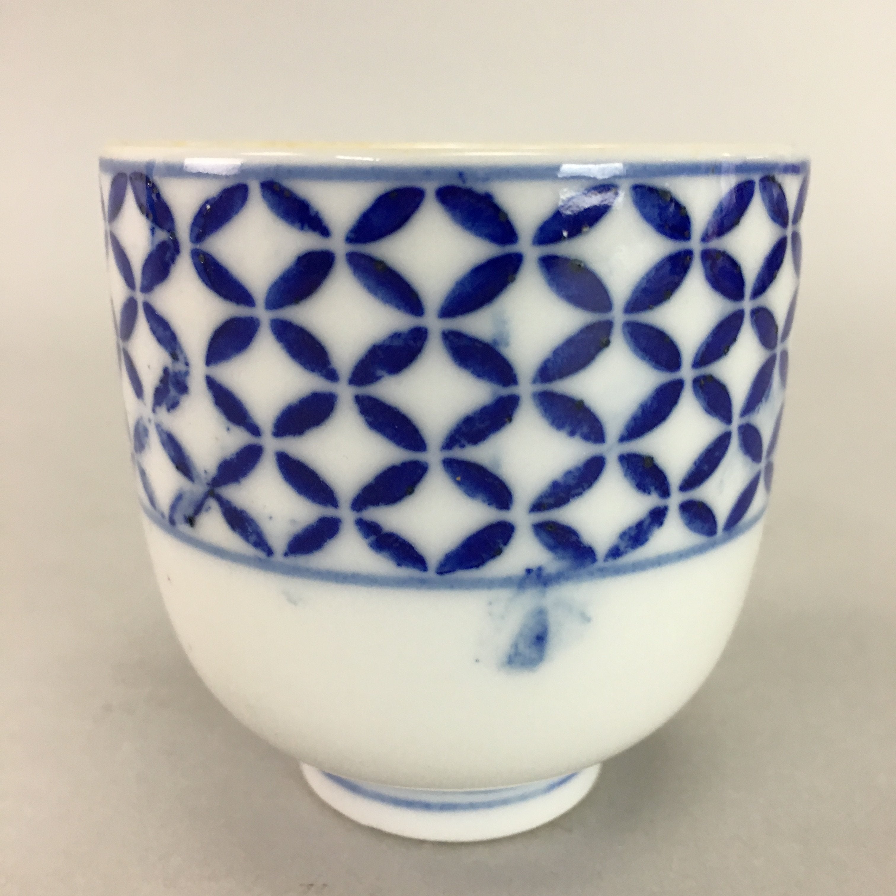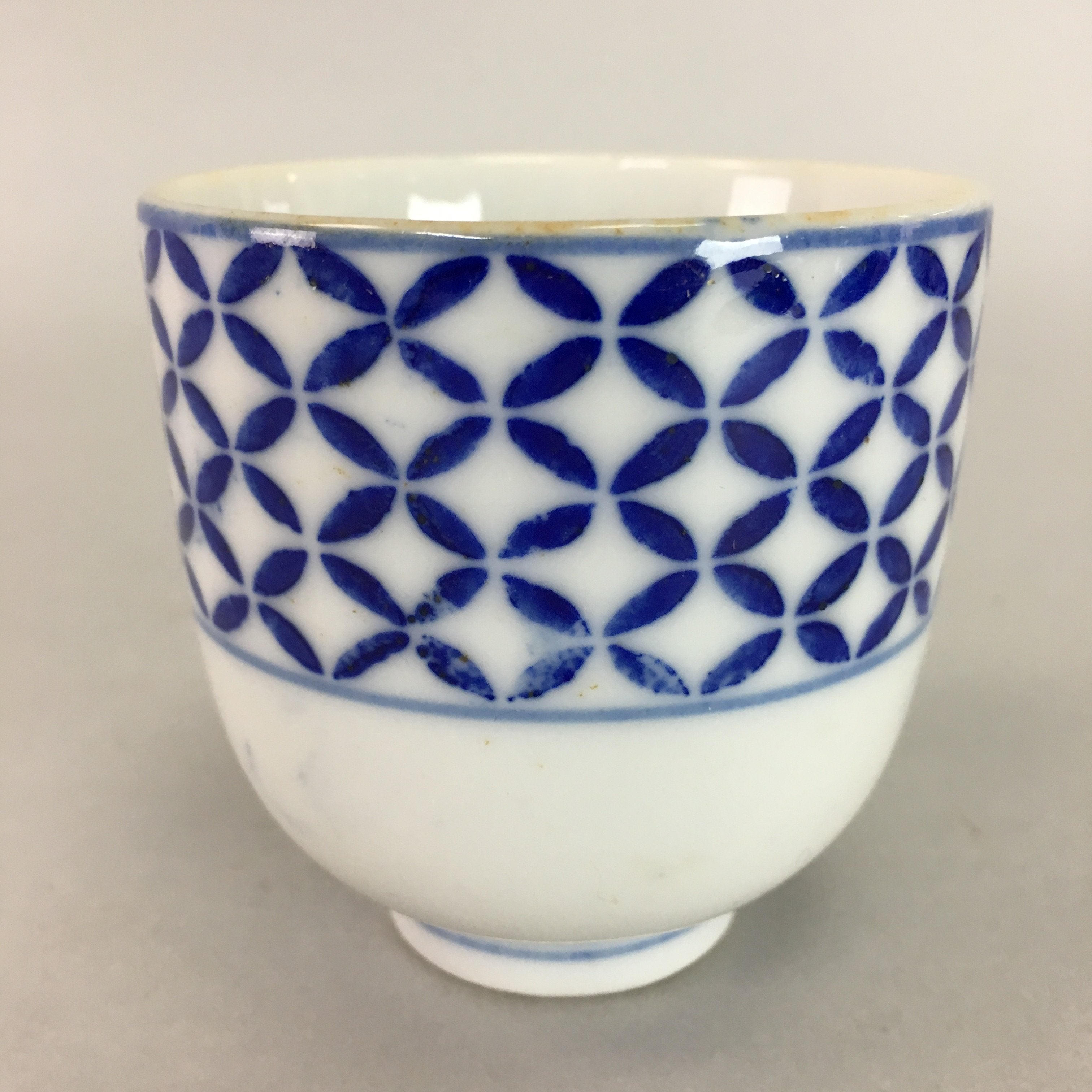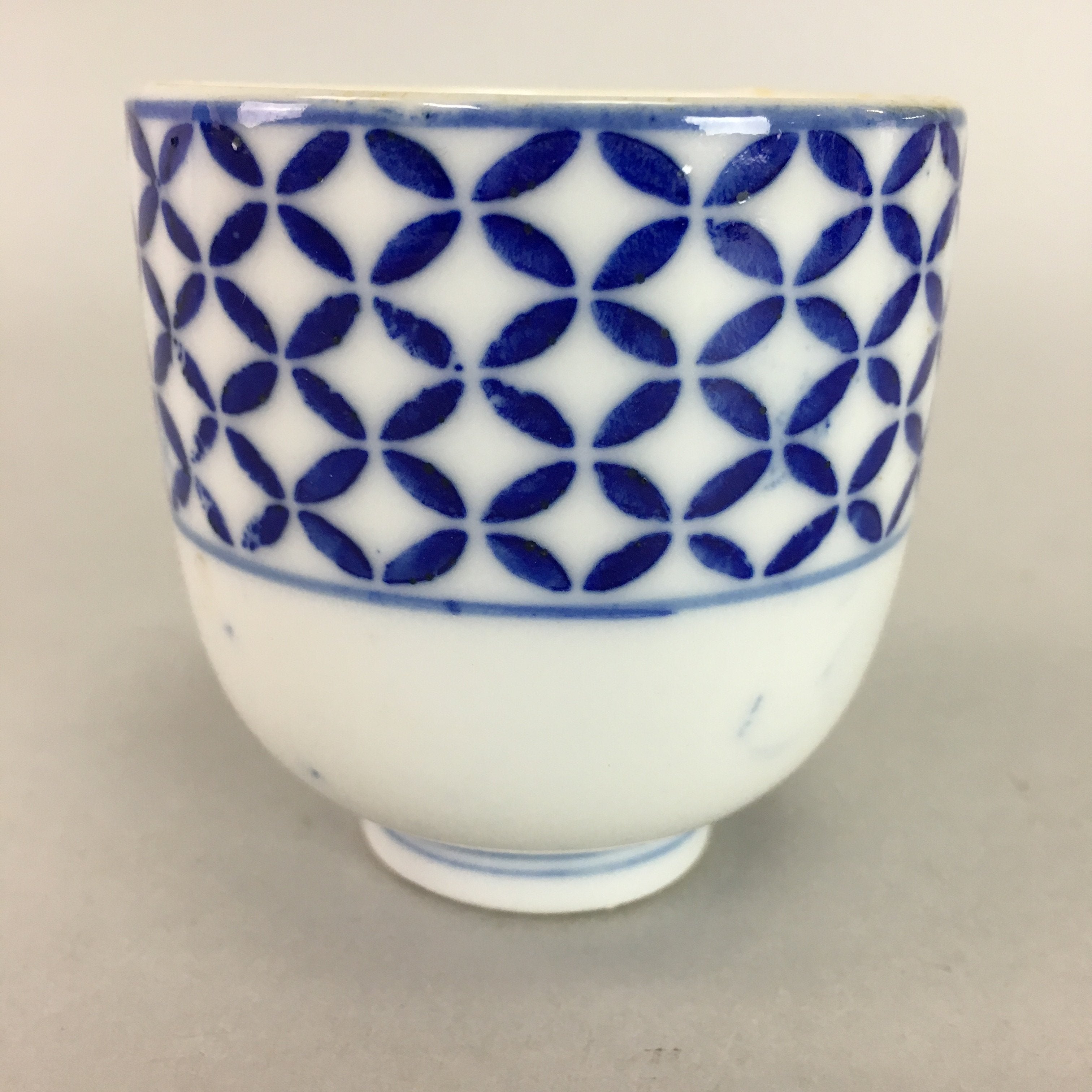 Japanese Porcelain Teacup Vtg Yunomi Sometsuke Blue White Shippo Sencha TC13
