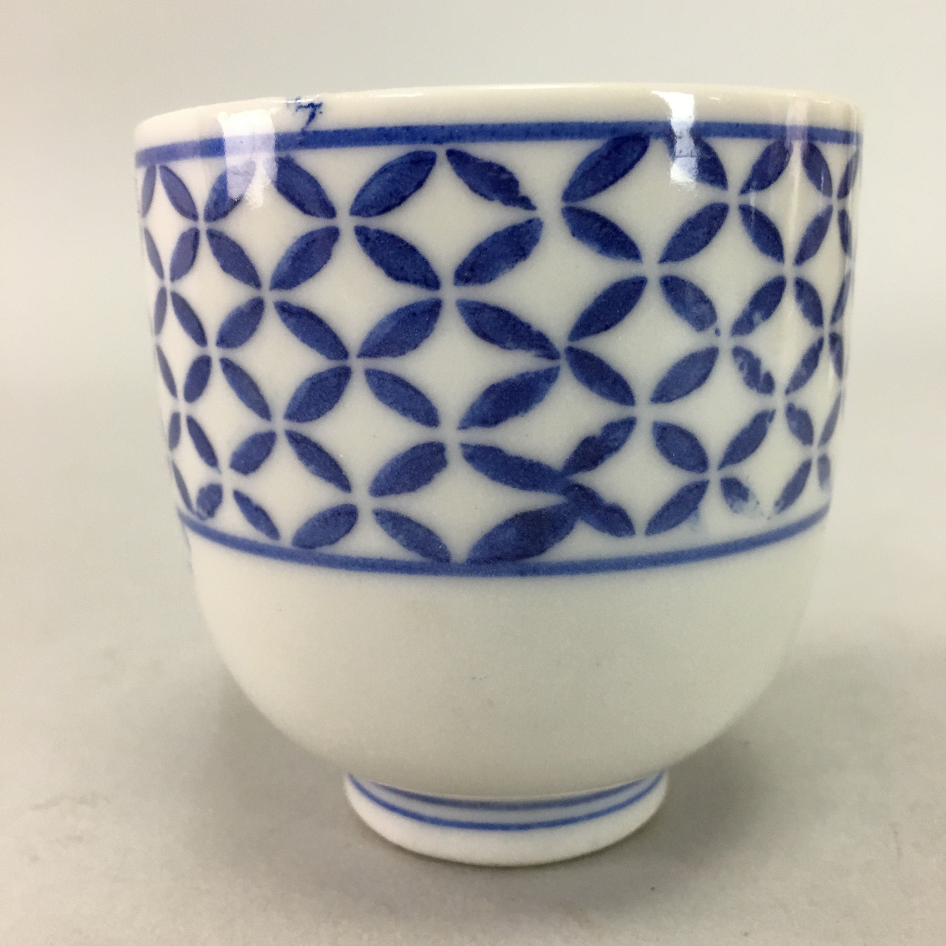 Japanese Porcelain Teacup Vtg Yunomi Sometsuke Blue White Shippo Sencha TC2