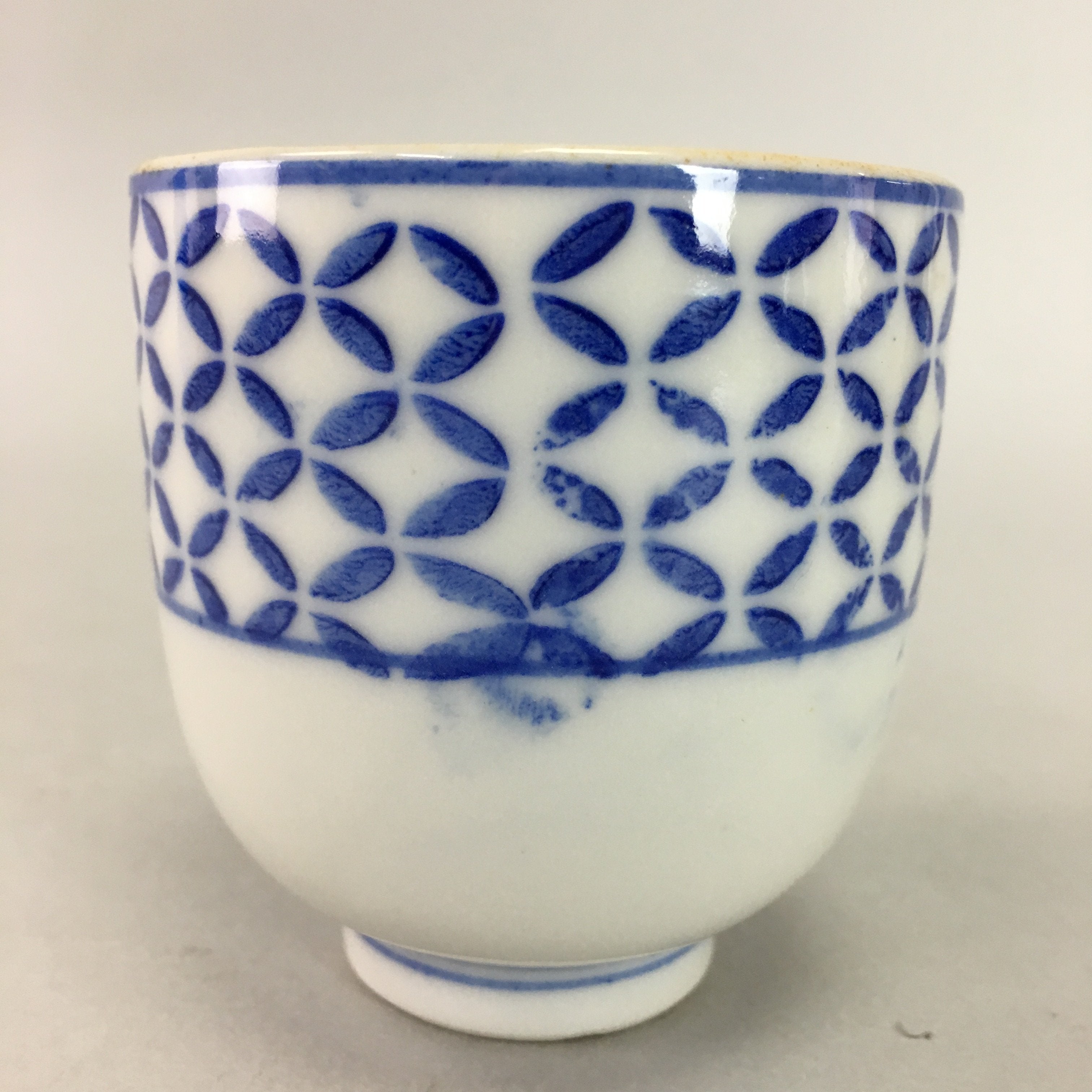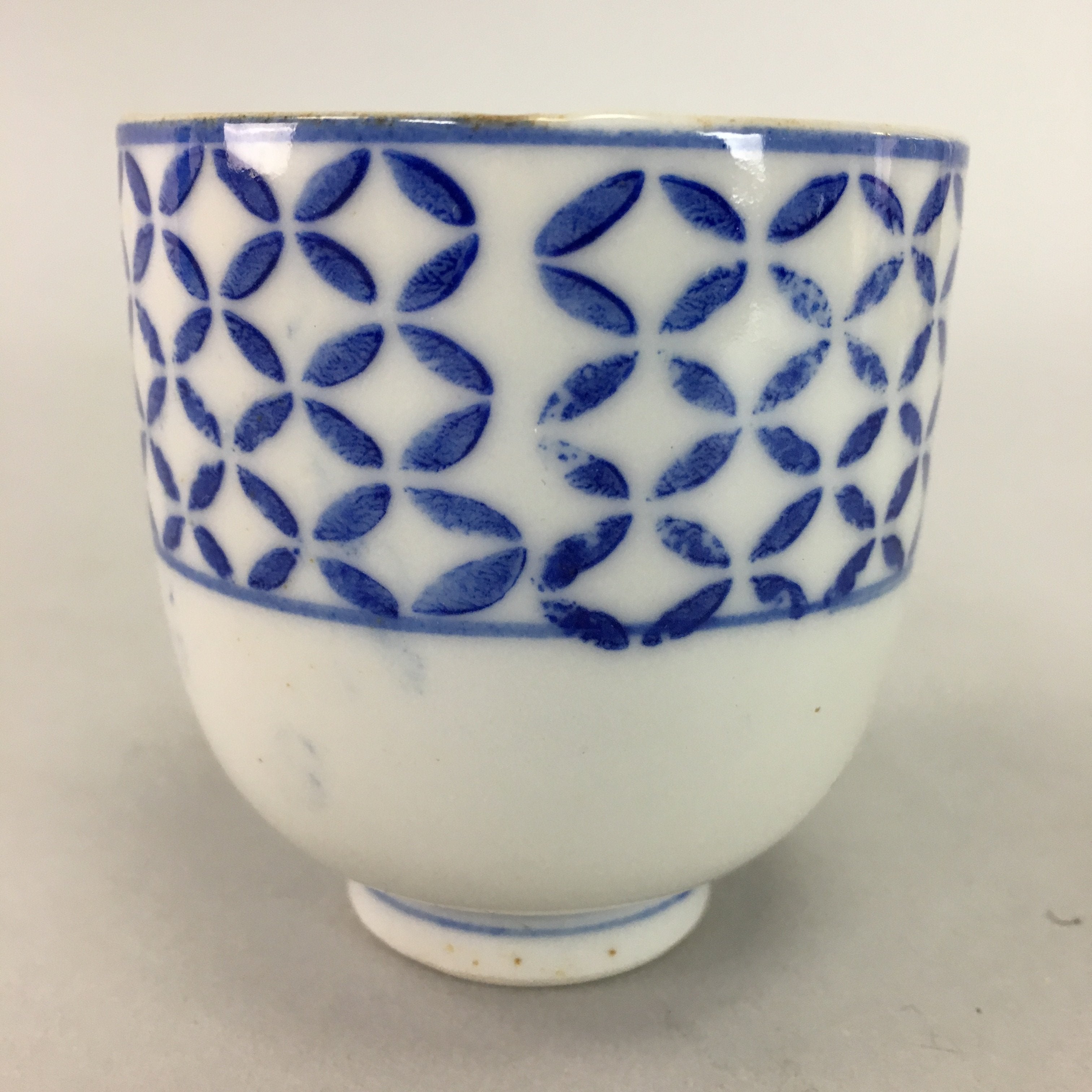 Japanese Porcelain Teacup Vtg Yunomi Sometsuke Blue White Shippo Sencha TC7