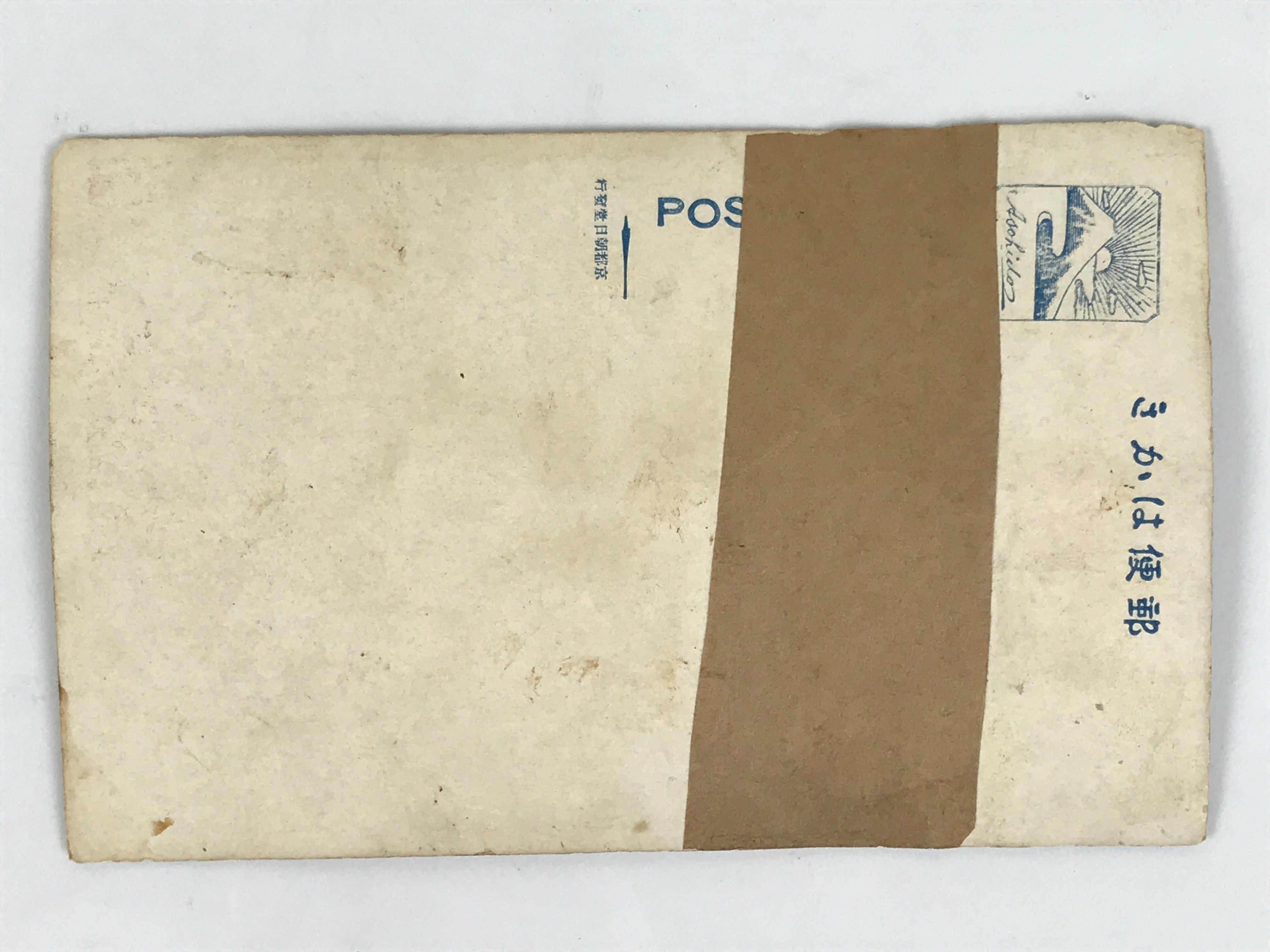- Good condition considering its age. Horizontal tear fixed with brown tape at the back by the previous owner. Some damage all around the postcard (paper is missing). Wear and tear due to age. Please see the photos carefully.