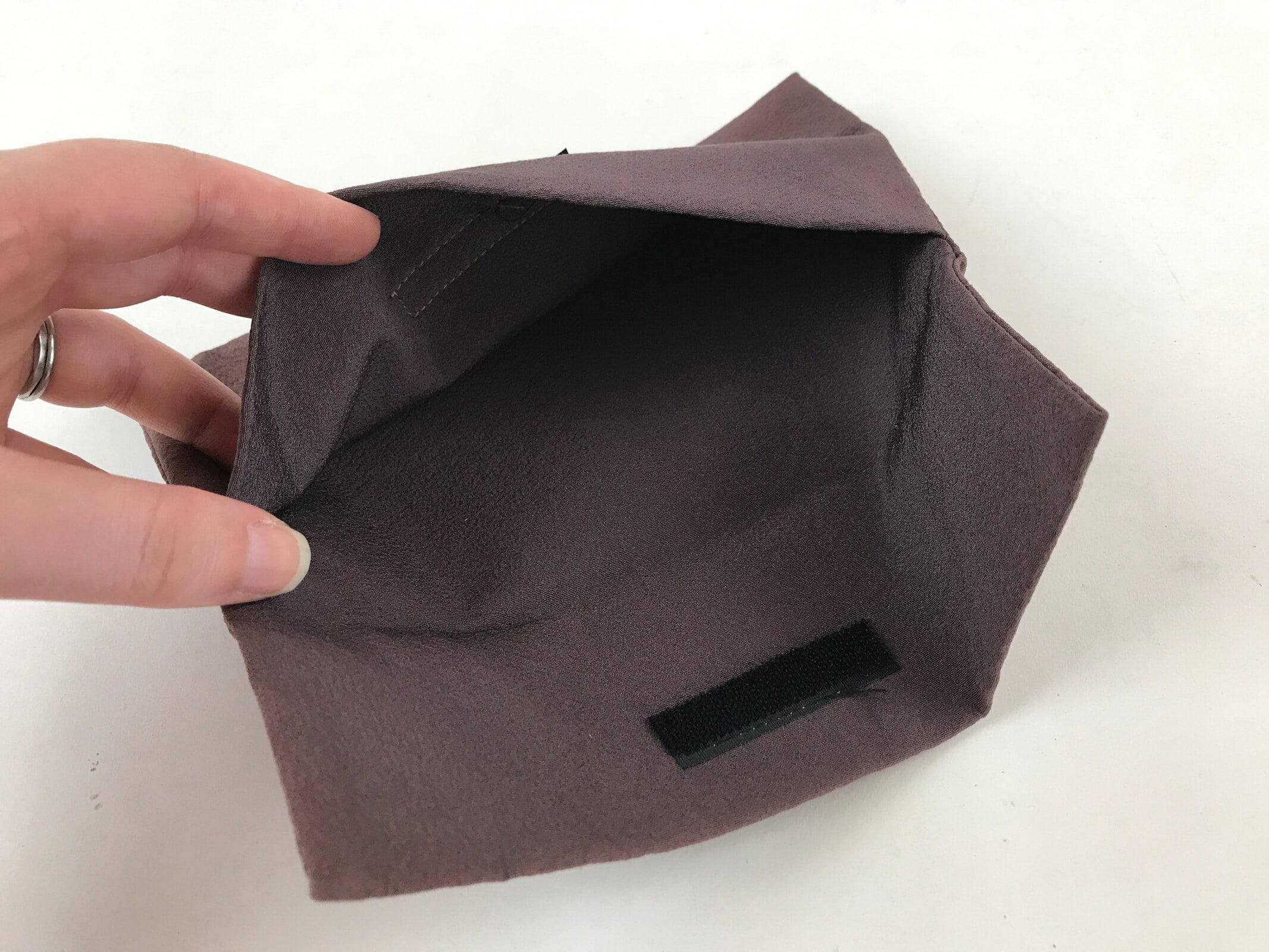 This is a Japanese vintage handmade fabric prayer beads Juzu bag, Jyuzu-Bukuro. It is used to carry rosary beads used in memorial services such as funerals. It is a shiny plain brown color. It has a hook-and-loop fastener.