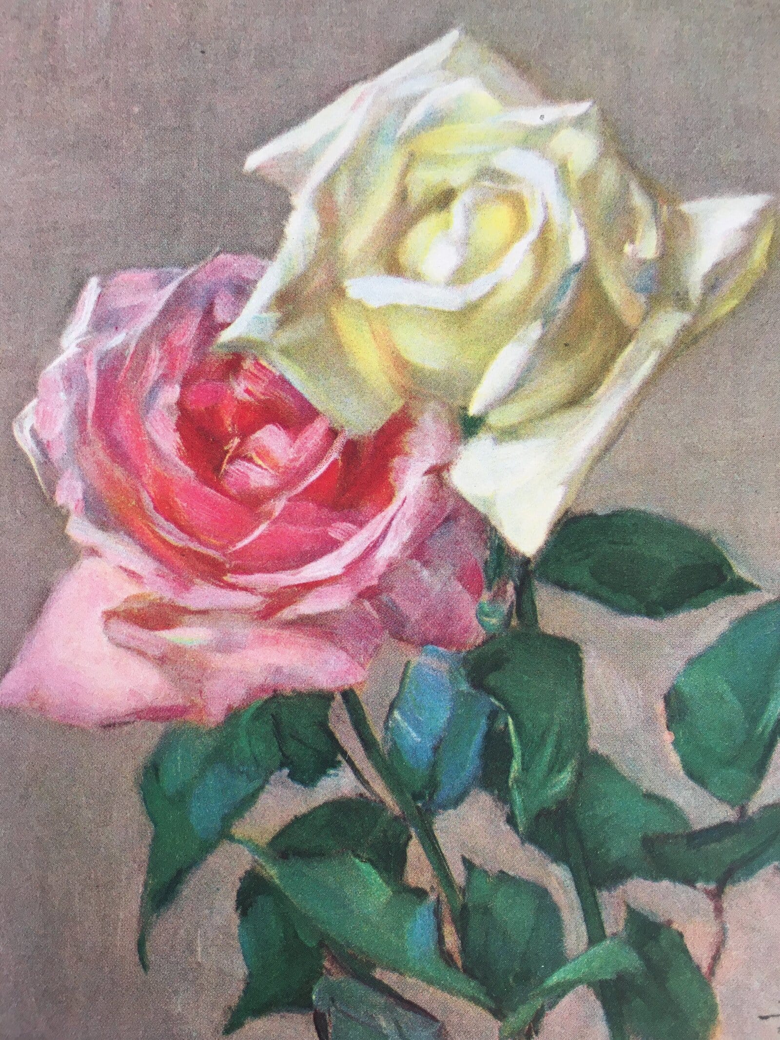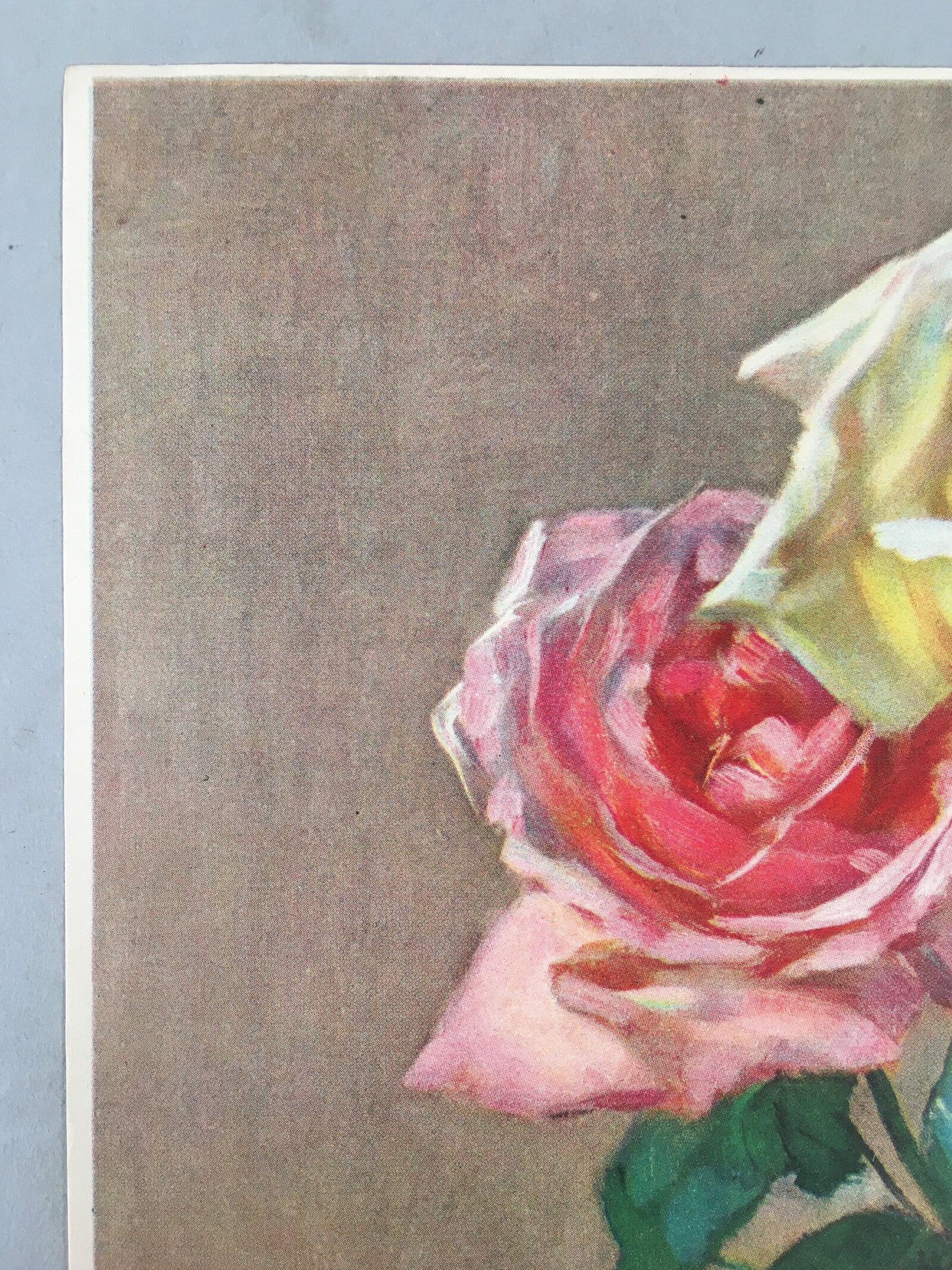 January 18, 2026Japanese Print Drawing Painting Vtg Pink Yellow Rose Flower P297