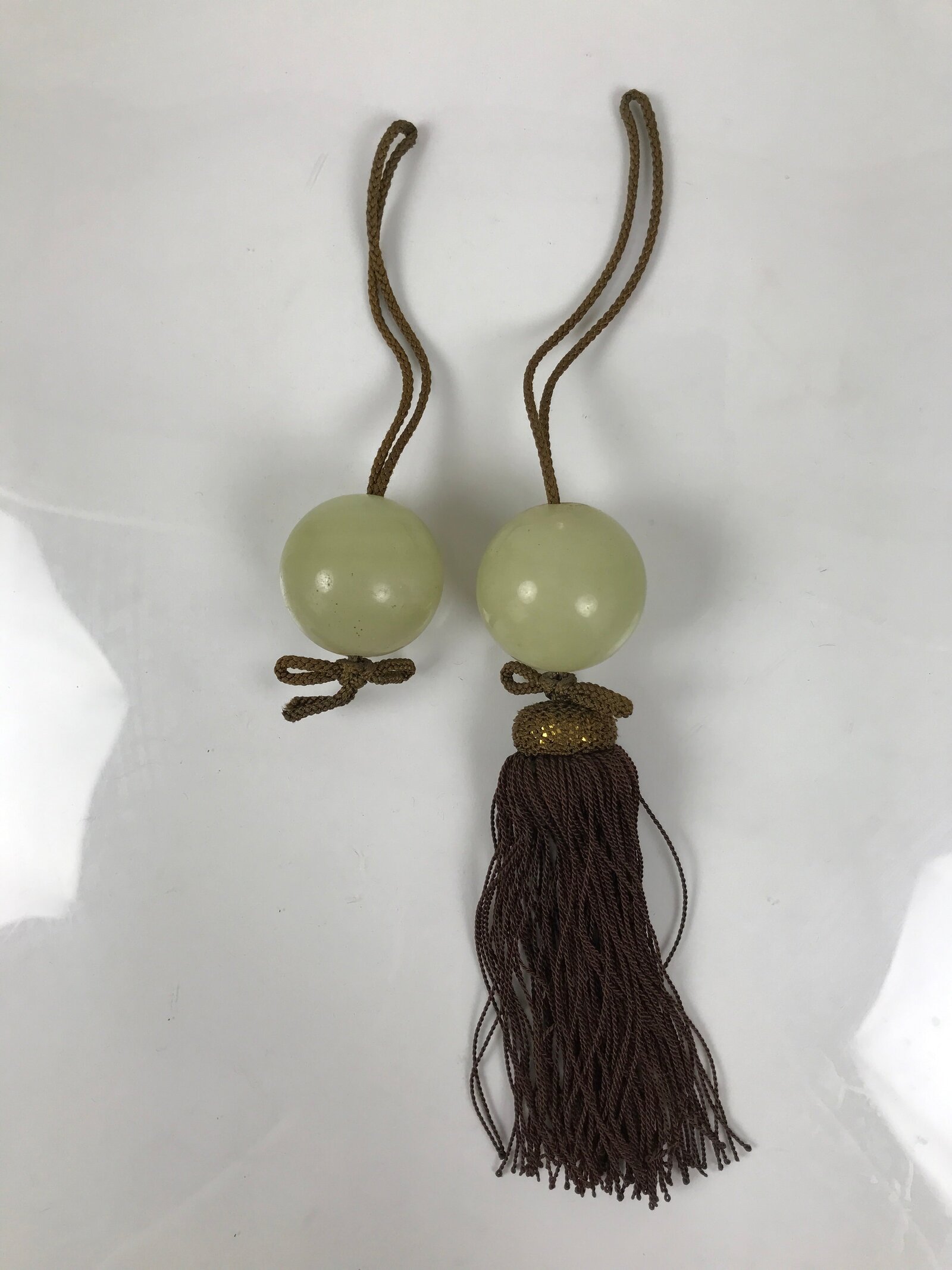 Japanese Moonstone Stone Hanging Scroll Weights Vtg Fuchin Kakejiku Tassel FC371