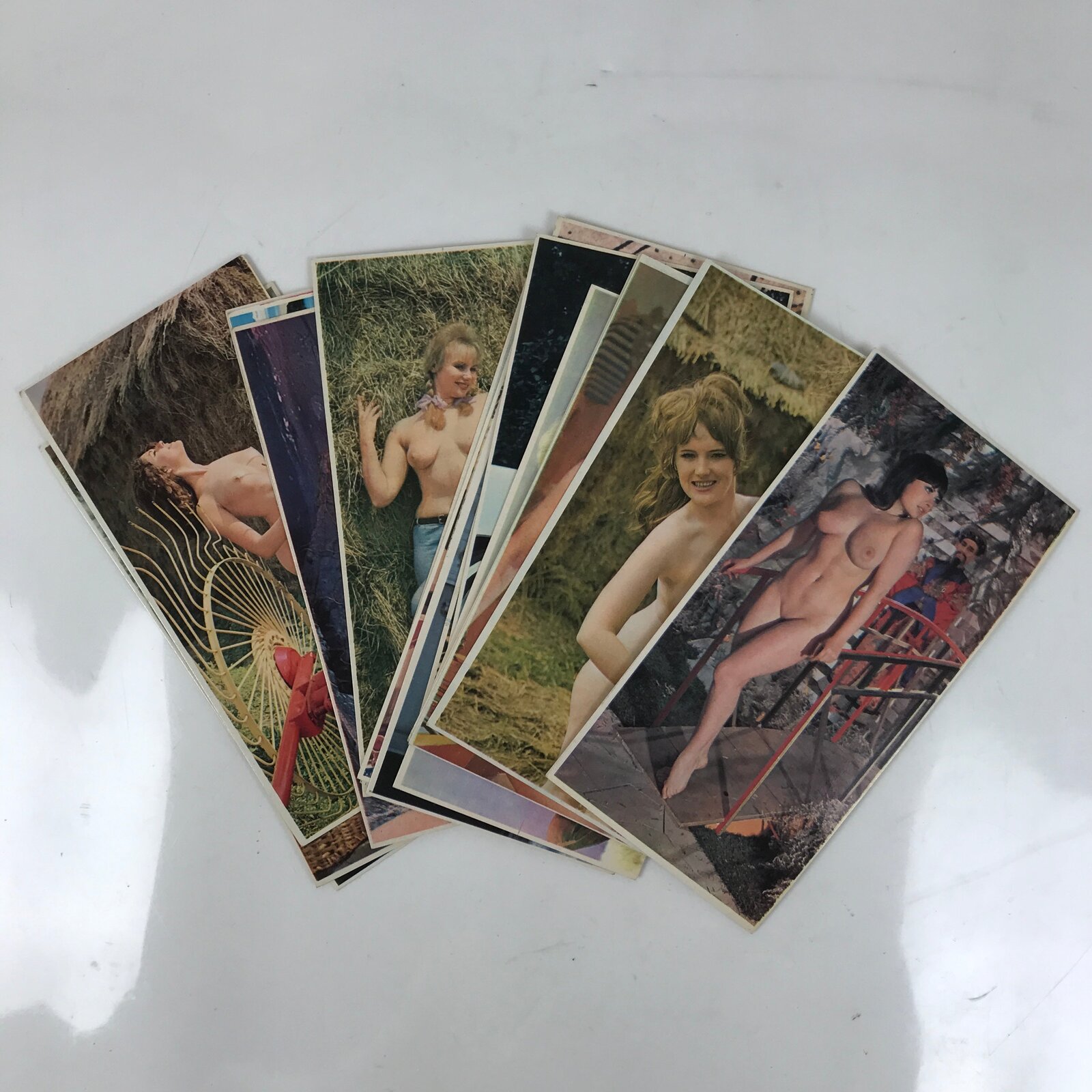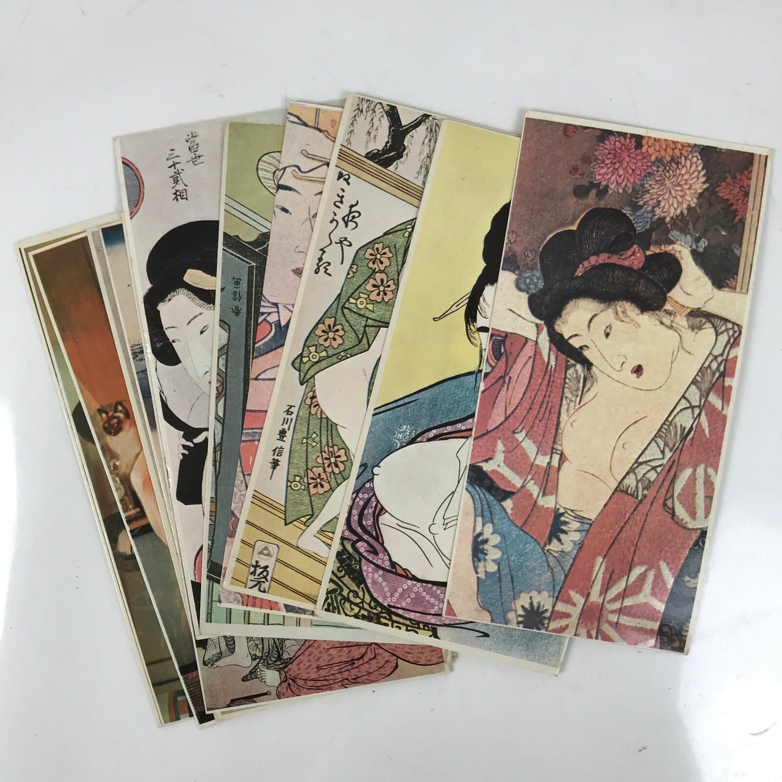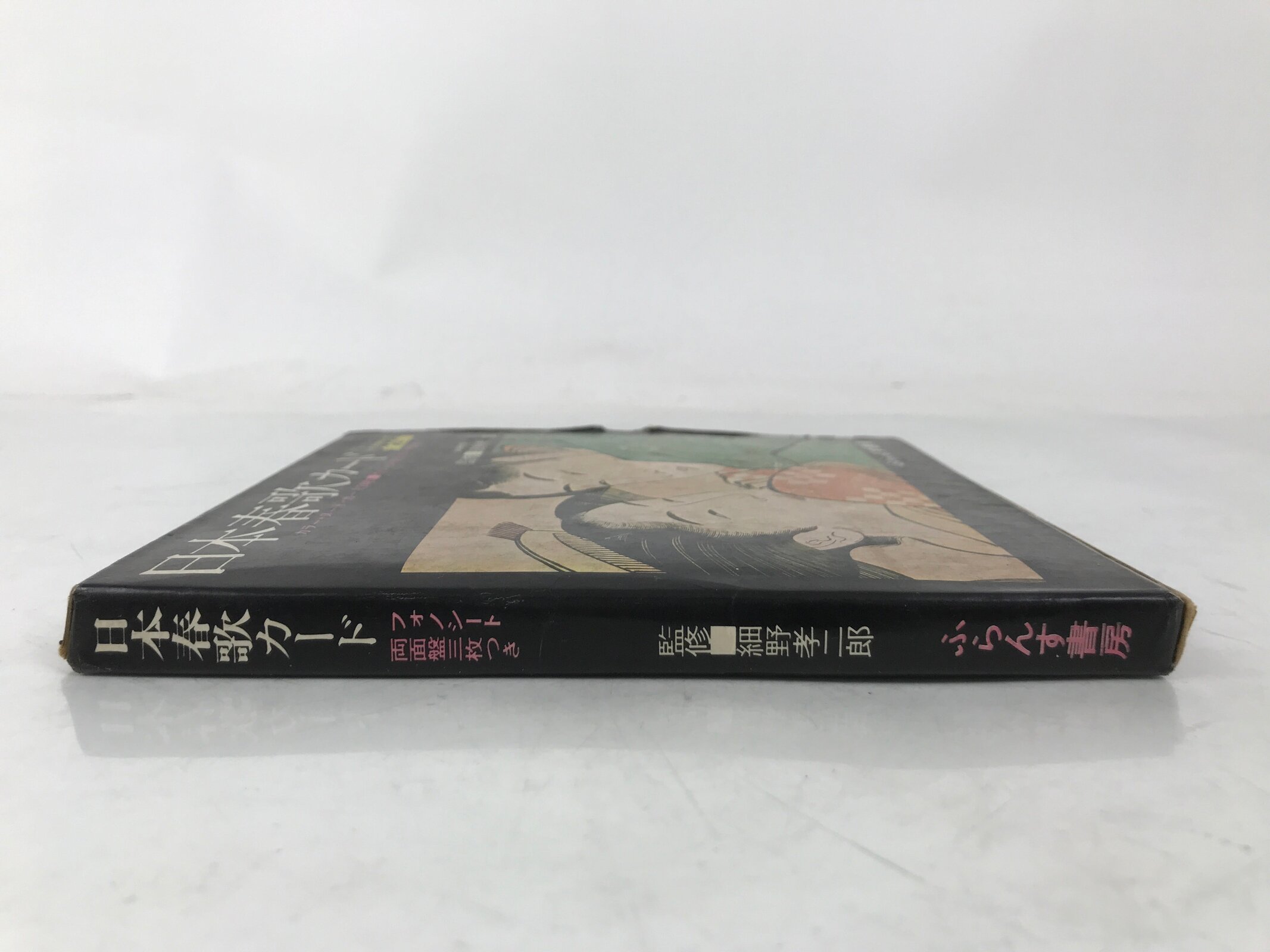 This is a set of vintage Japanese records, flexi-discs, and paper cards. It contains three records (not tested), twenty-four Ukiyo-e cards, and twenty-one nude images of women. The title of this set is “Japanese Erotic Songs and Cards.” Twenty Japanese erotic songs are on the records, and the lyrics are on the back of the Ukiyo-e cards. On the back of the nude cards are erotic but funny short stories.