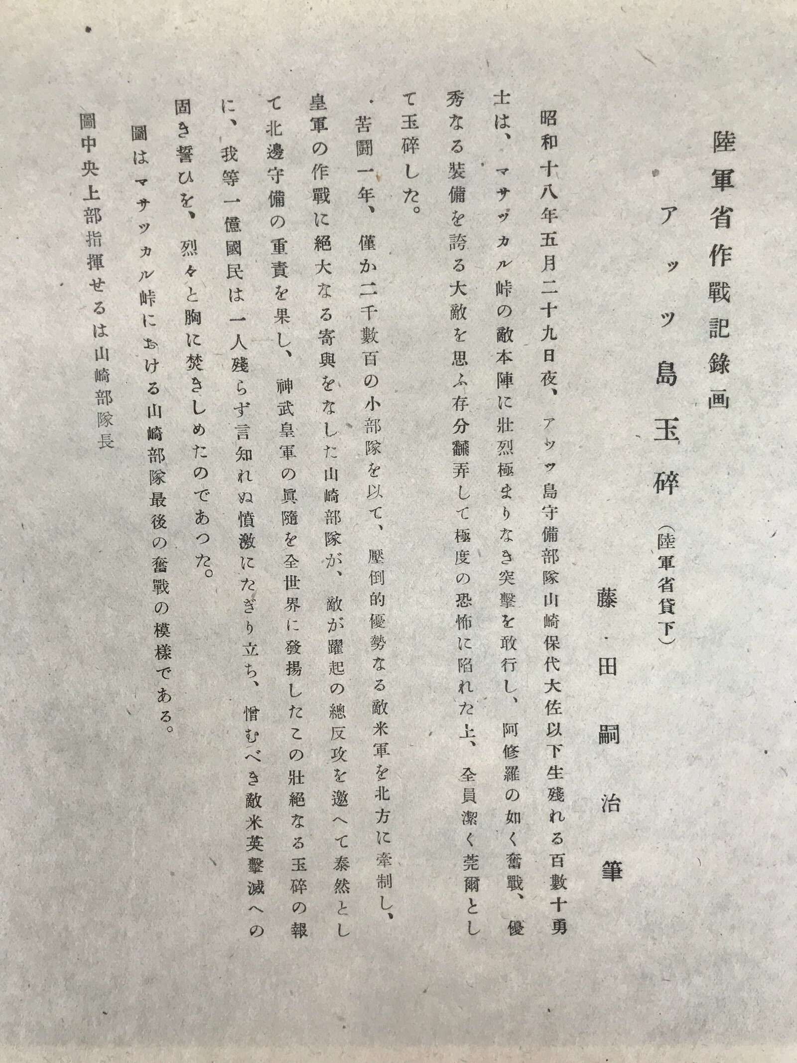 - Some characters: アッッ島玉砕, 藤田嗣治 Fujita Tsuguharu