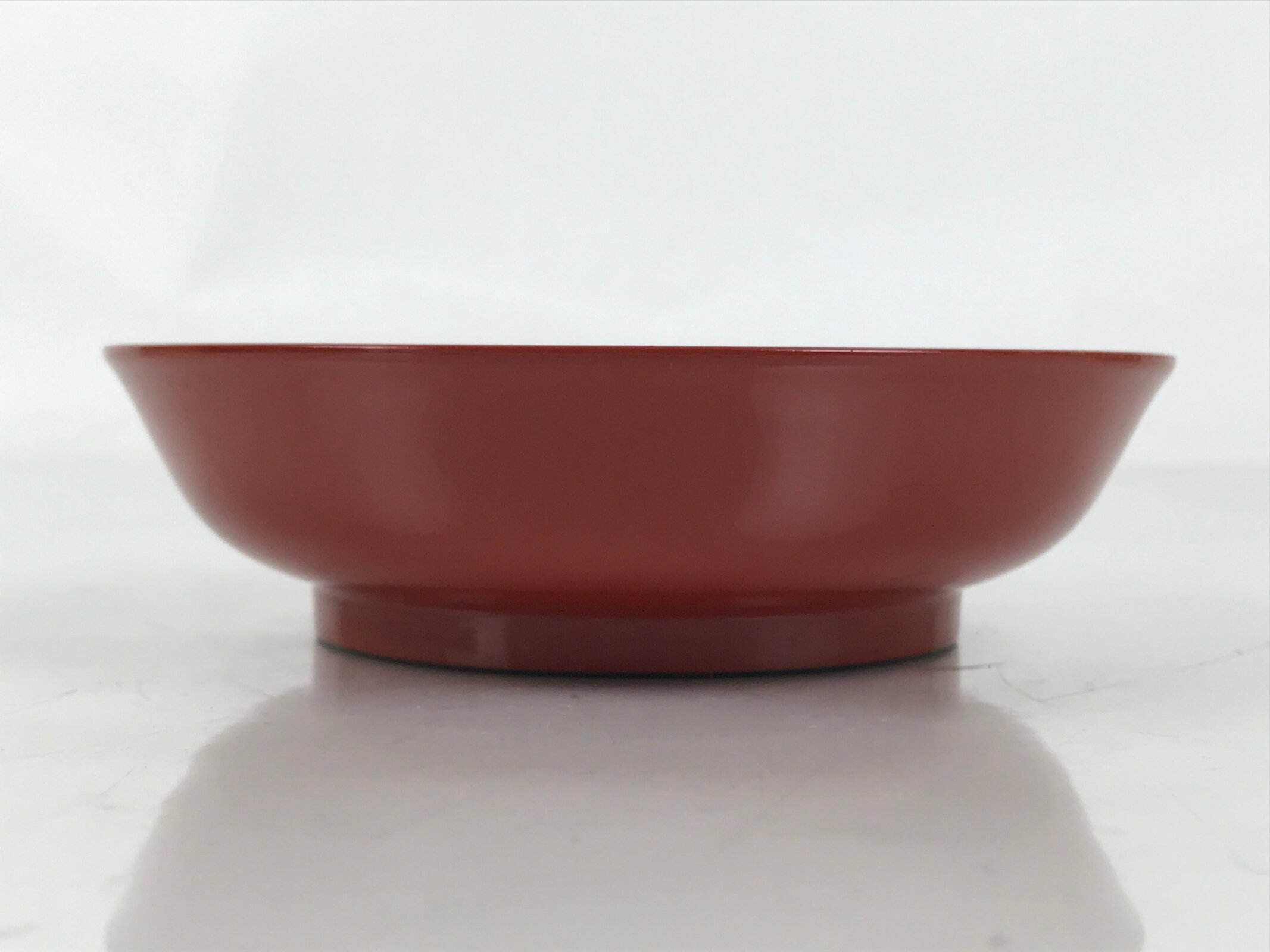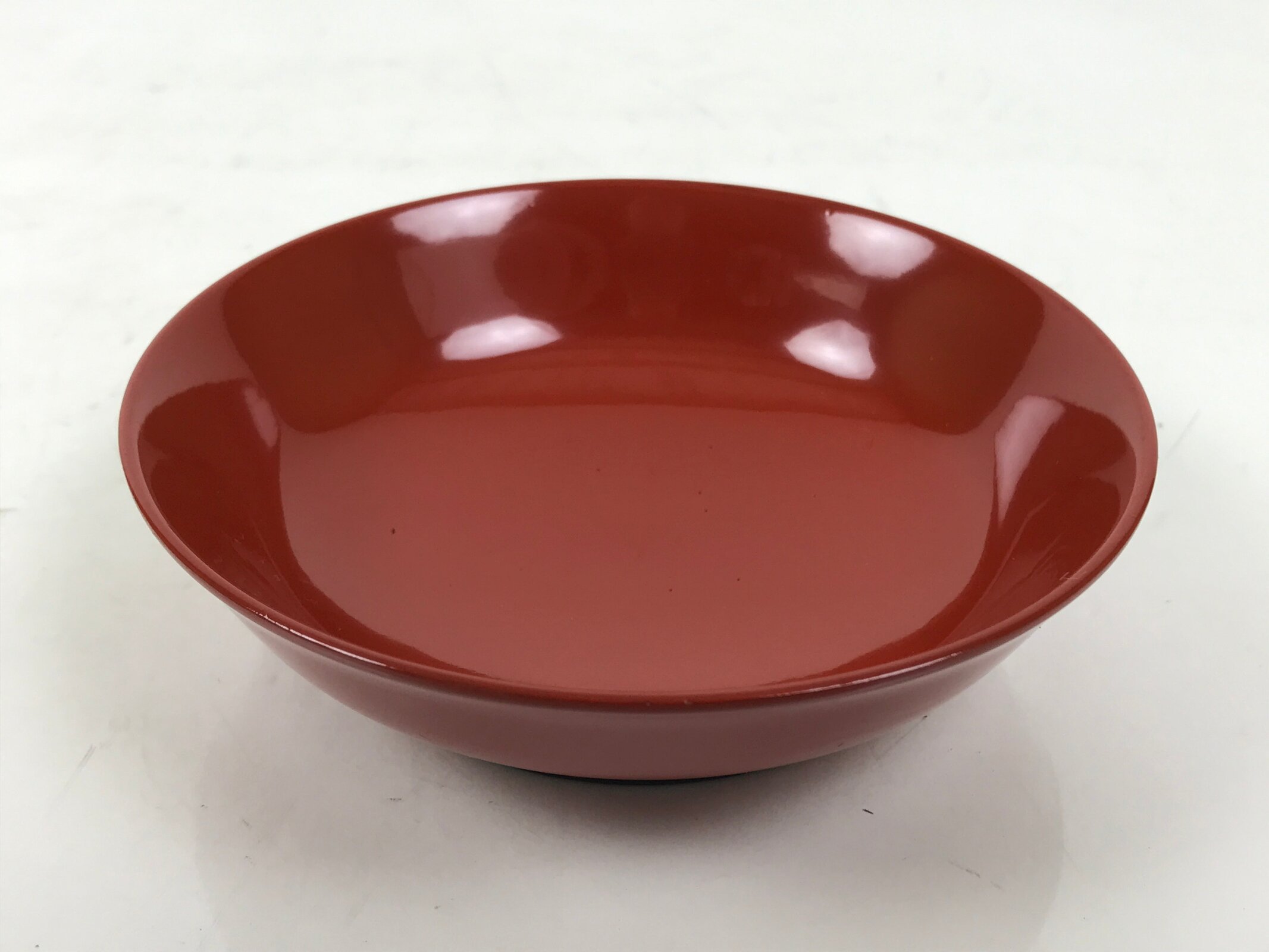 This is a Japanese vintage small bowl, or kobachi, typically used for serving cold salad, fruit, and other side dishes. This round dish is made of resin and mimics traditional lacquerware. It is mostly a gorgeous red color with a black underside.