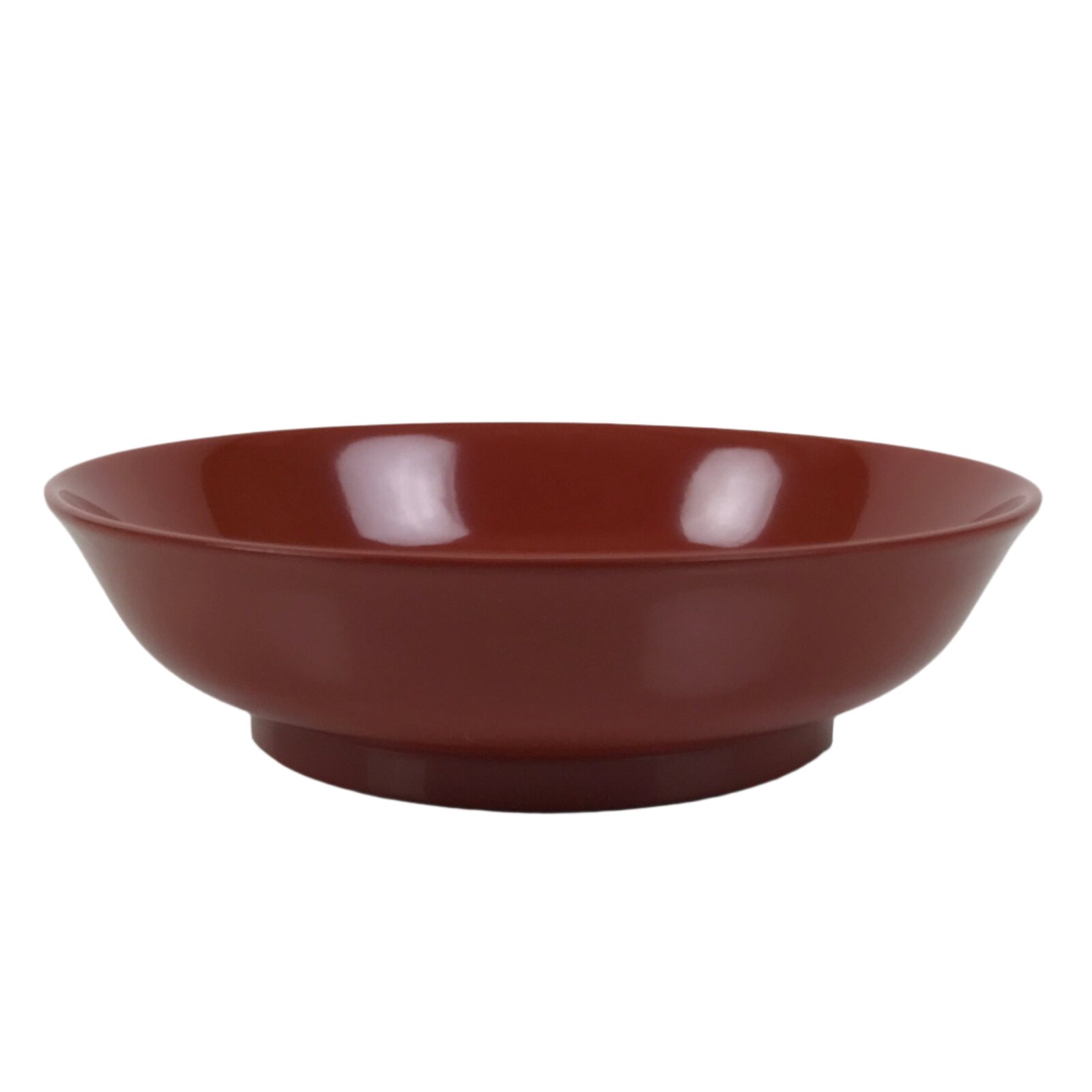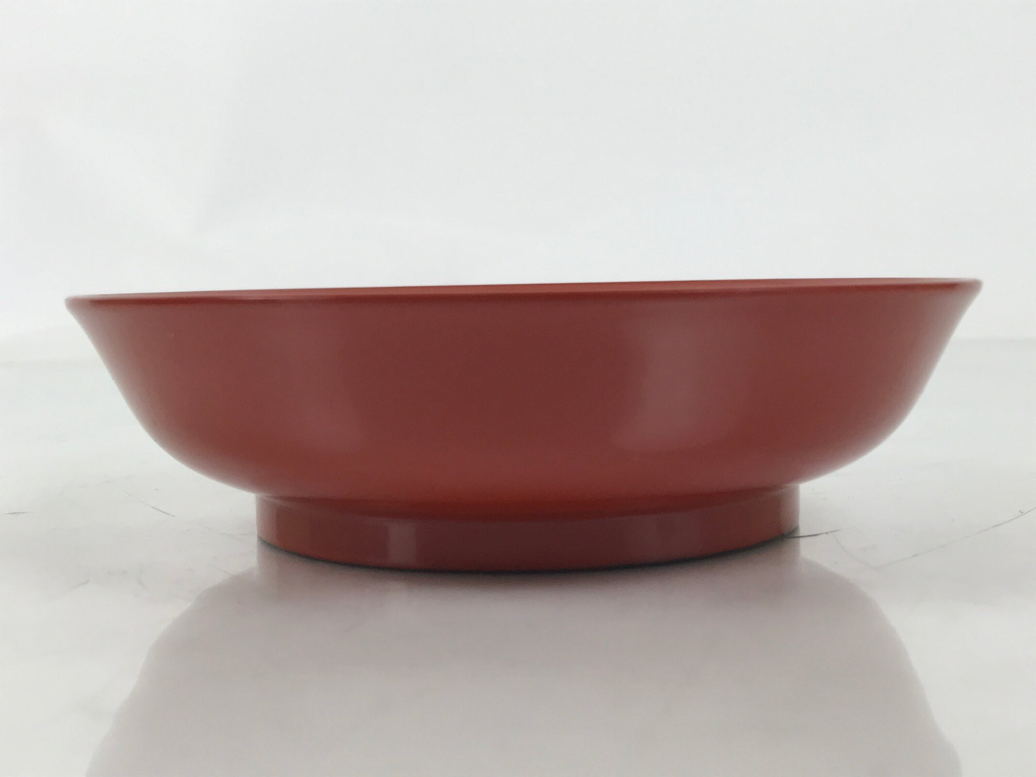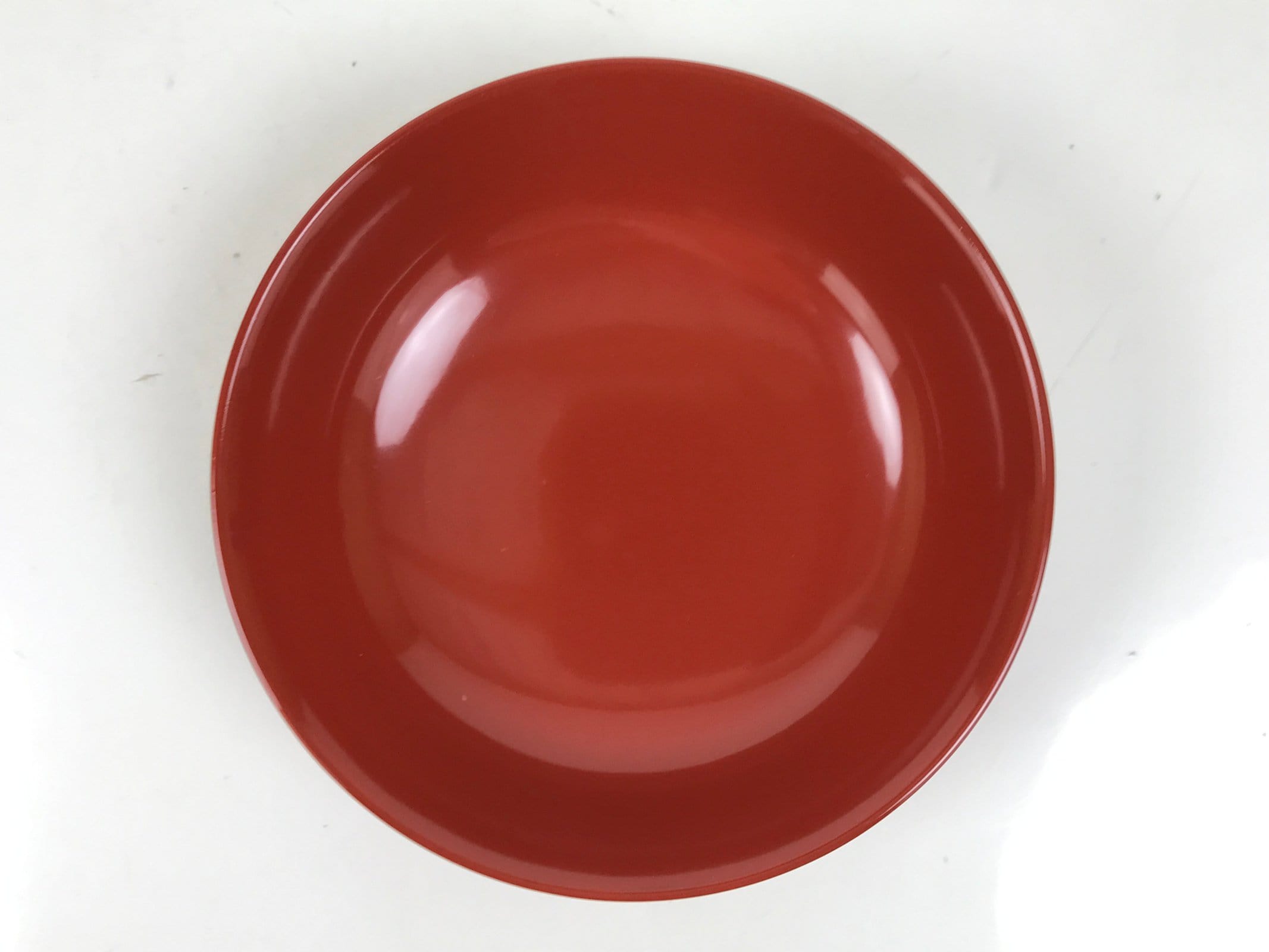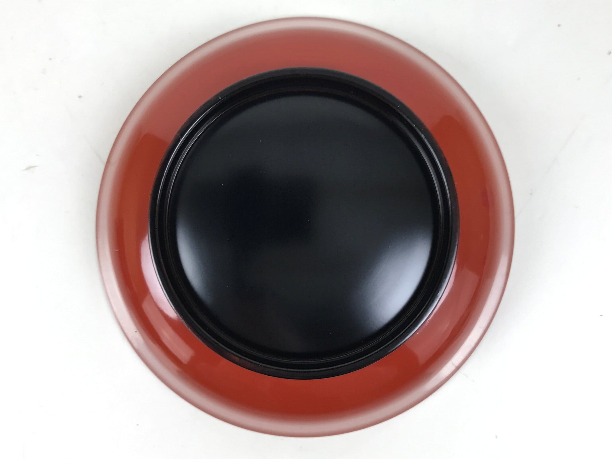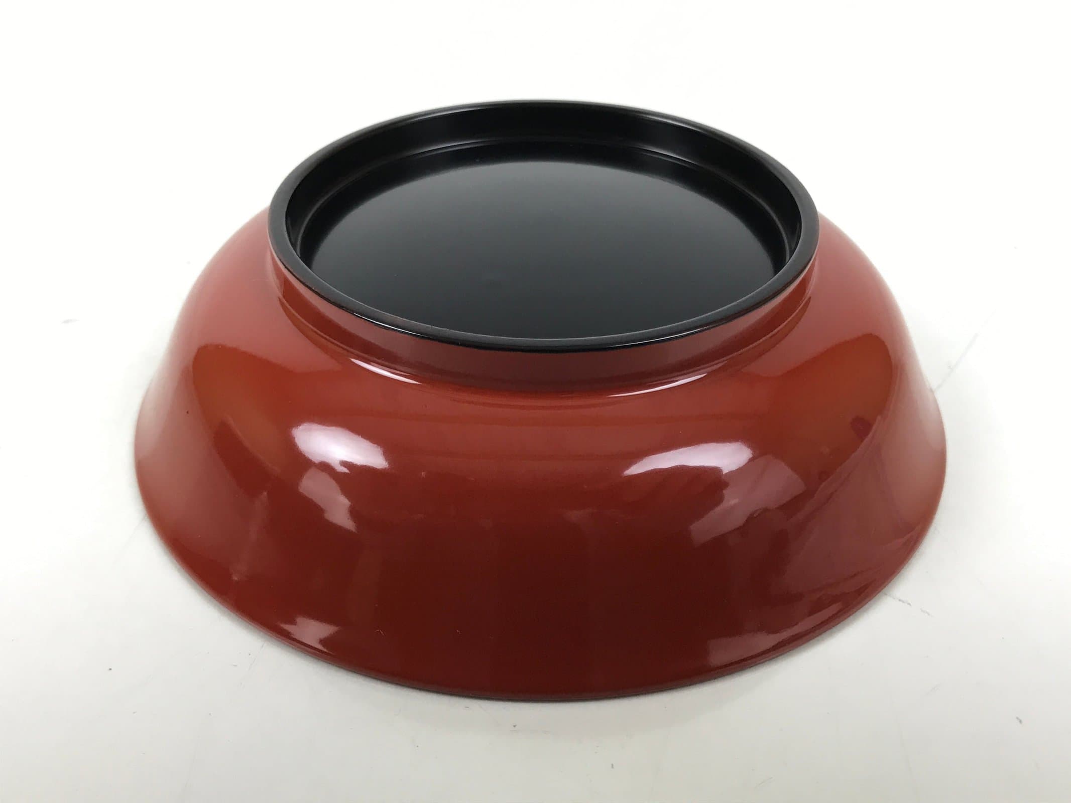 This is a Japanese vintage small bowl, or kobachi, typically used for serving cold salad, fruit, and other side dishes. This round dish is made of resin and mimics traditional lacquerware. It is mostly a gorgeous red color with a black underside.