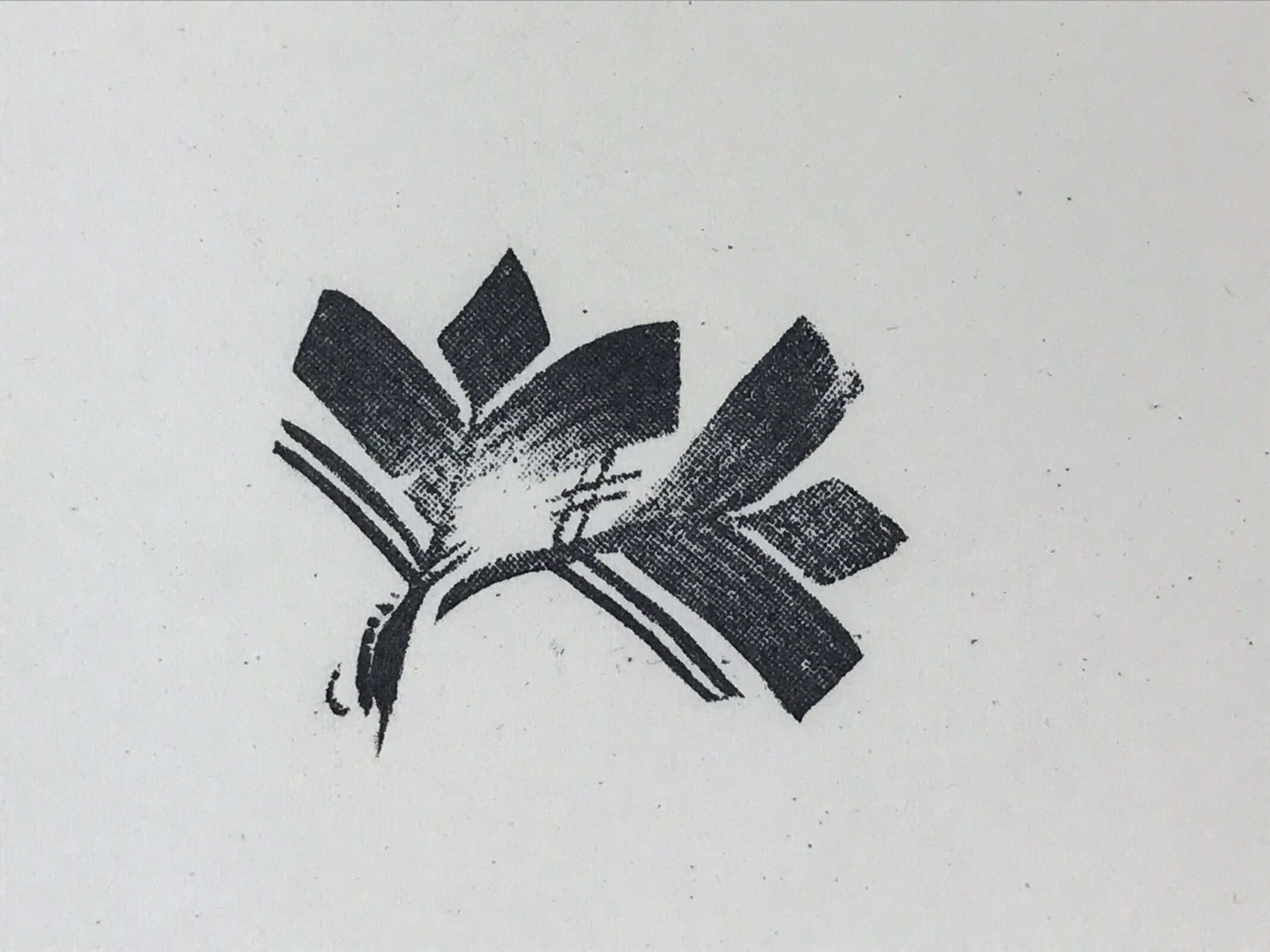 This is a Japanese vintage rubber stamp attached to a sponge-like base. The stamp features some foliage. The sponge base has hardened. This stamp can be used as it or you can remove the rubber to place it on another base.
