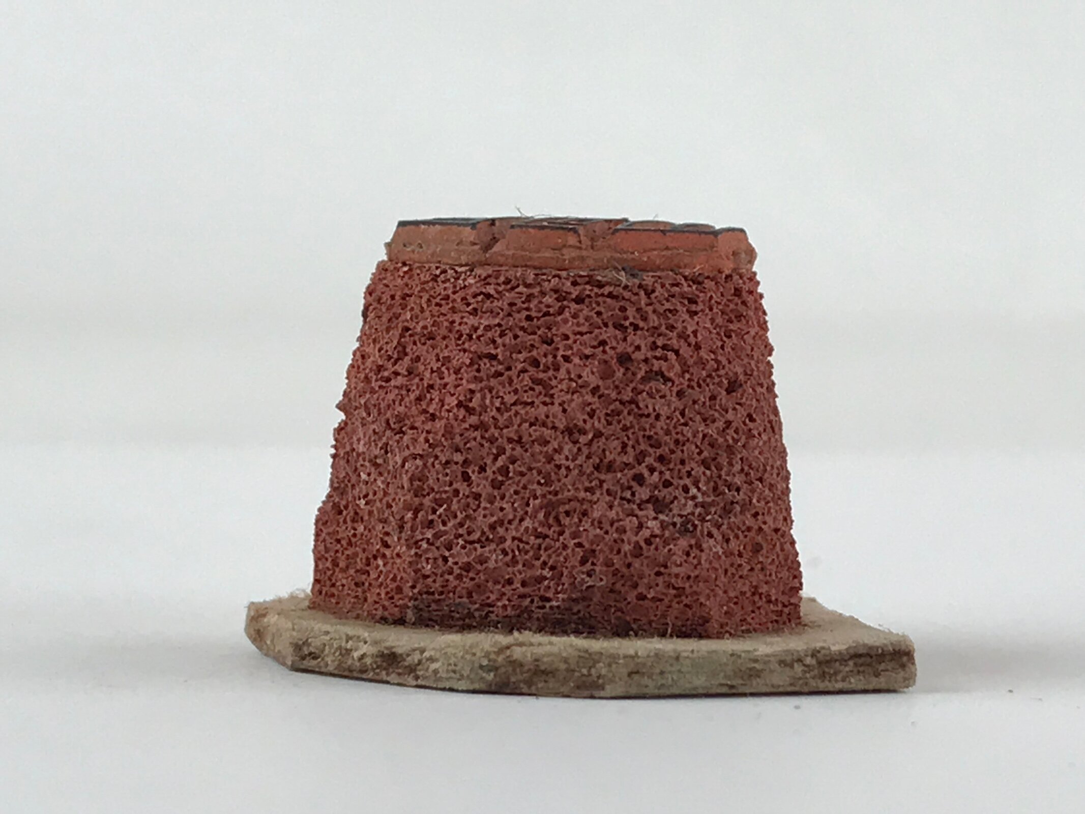 This is a Japanese vintage rubber stamp attached to a sponge like base. The stamp represents a Japanese character designed in a round fashion. The sponge base is squishy and attached to a cardboard paper. This stamp can be used as it or you can remove the rubber to place it on another base.