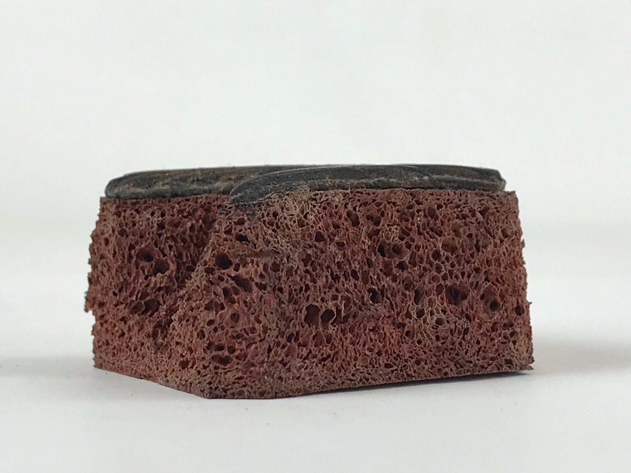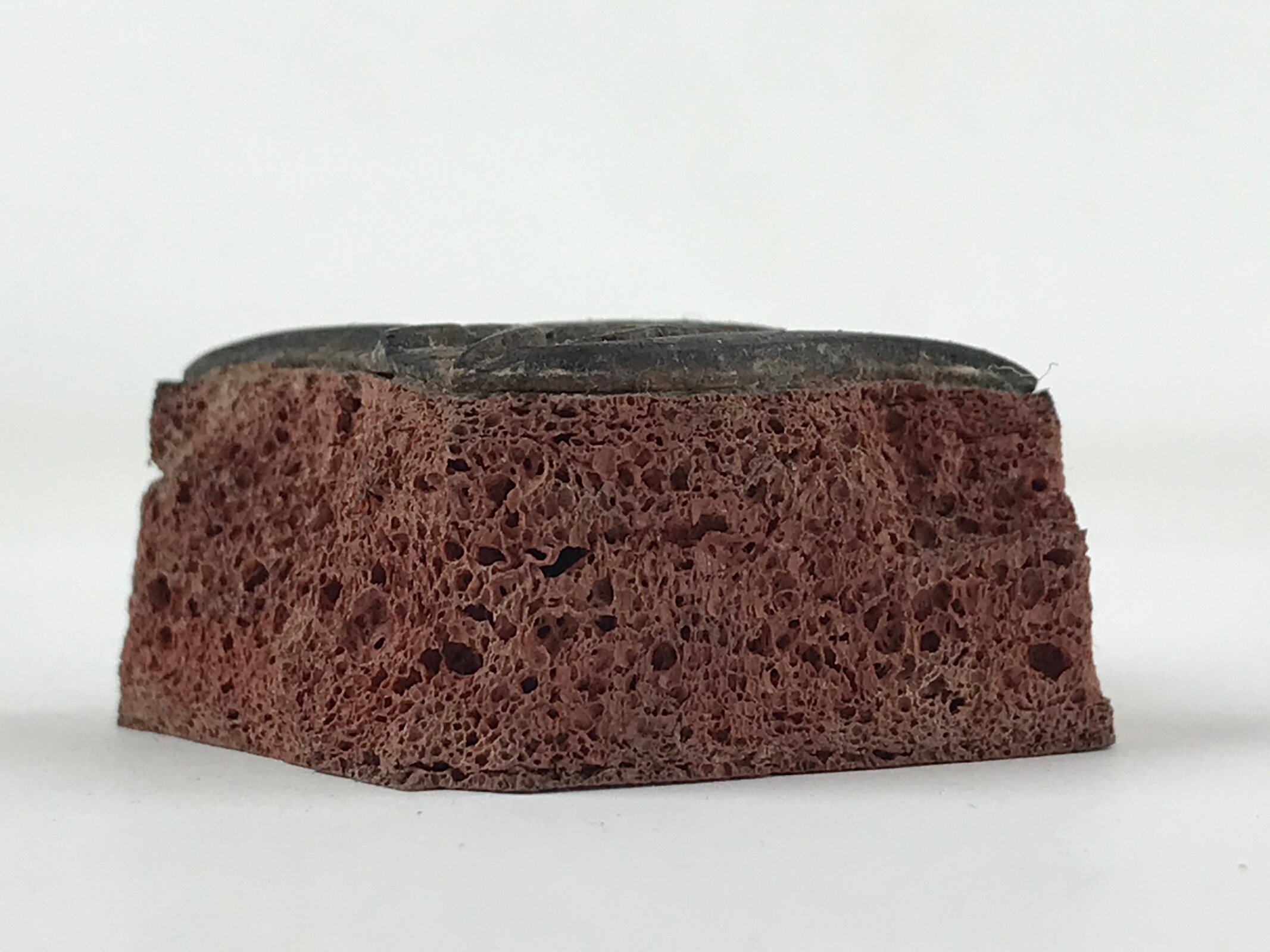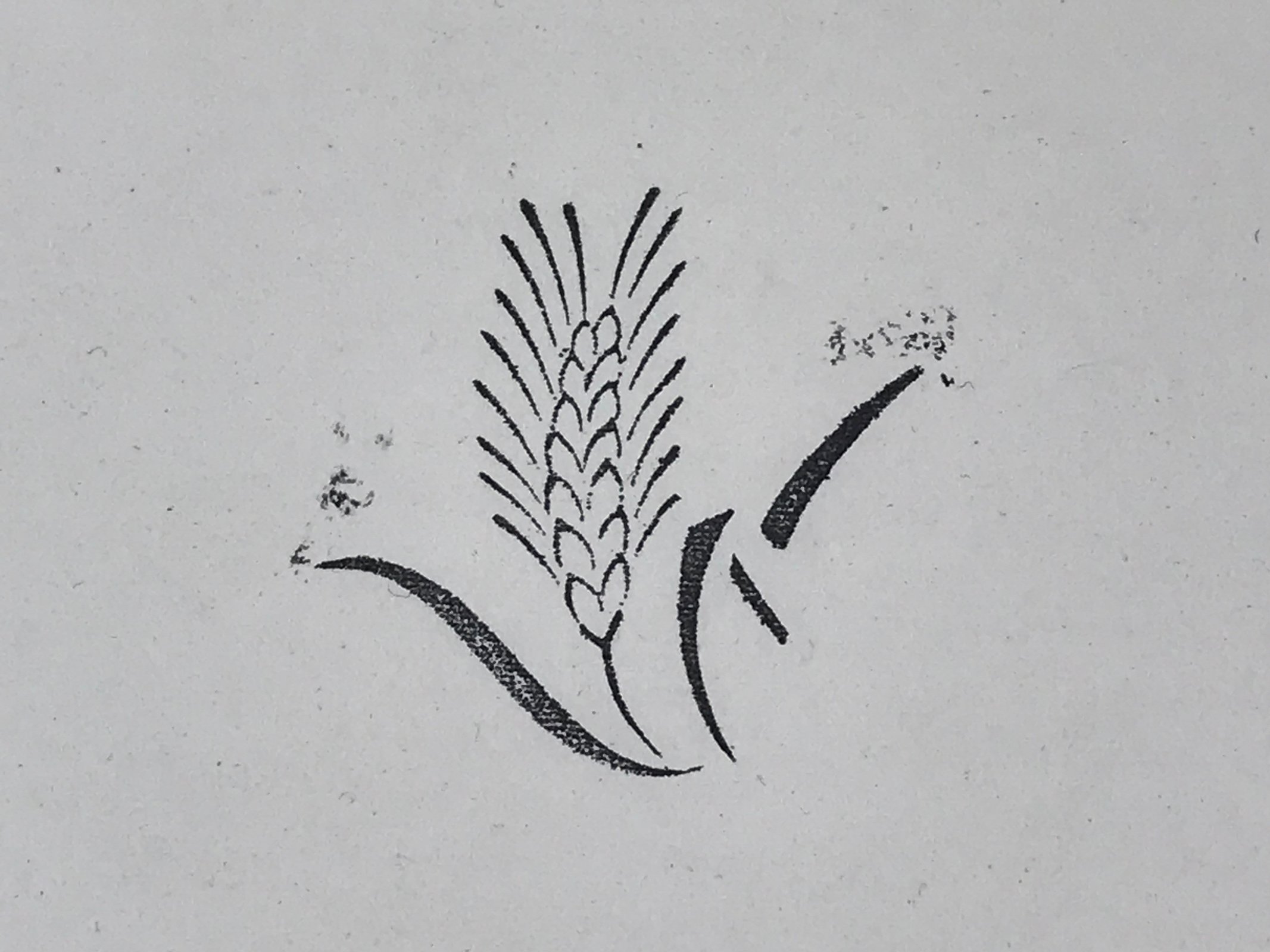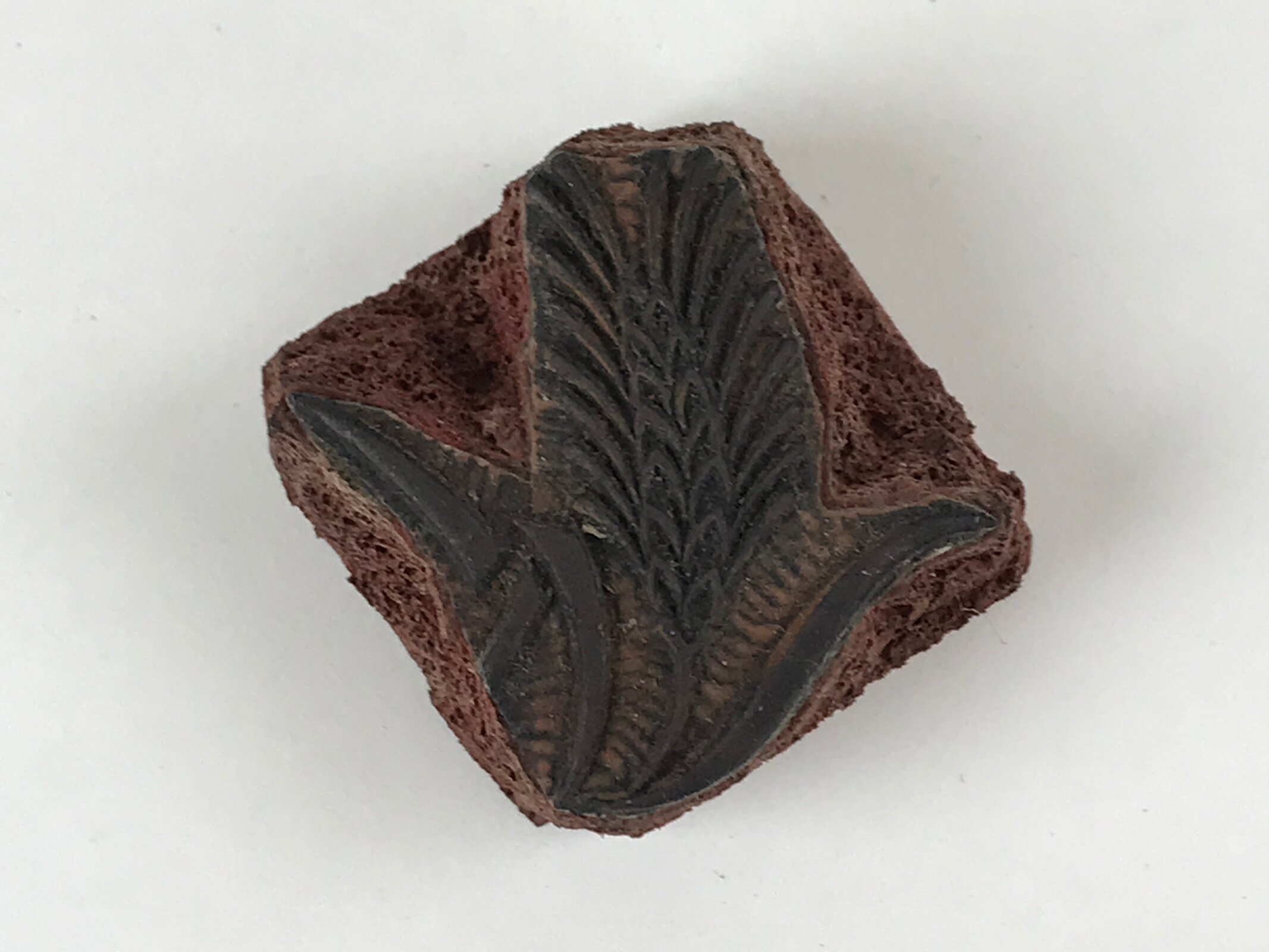 This is a Japanese vintage rubber stamp attached to a sponge-like base. The stamp features an ear or spike of wheat with foliage. The sponge base is still squishy. This stamp can be used as it or you can remove the rubber to place it on another base.