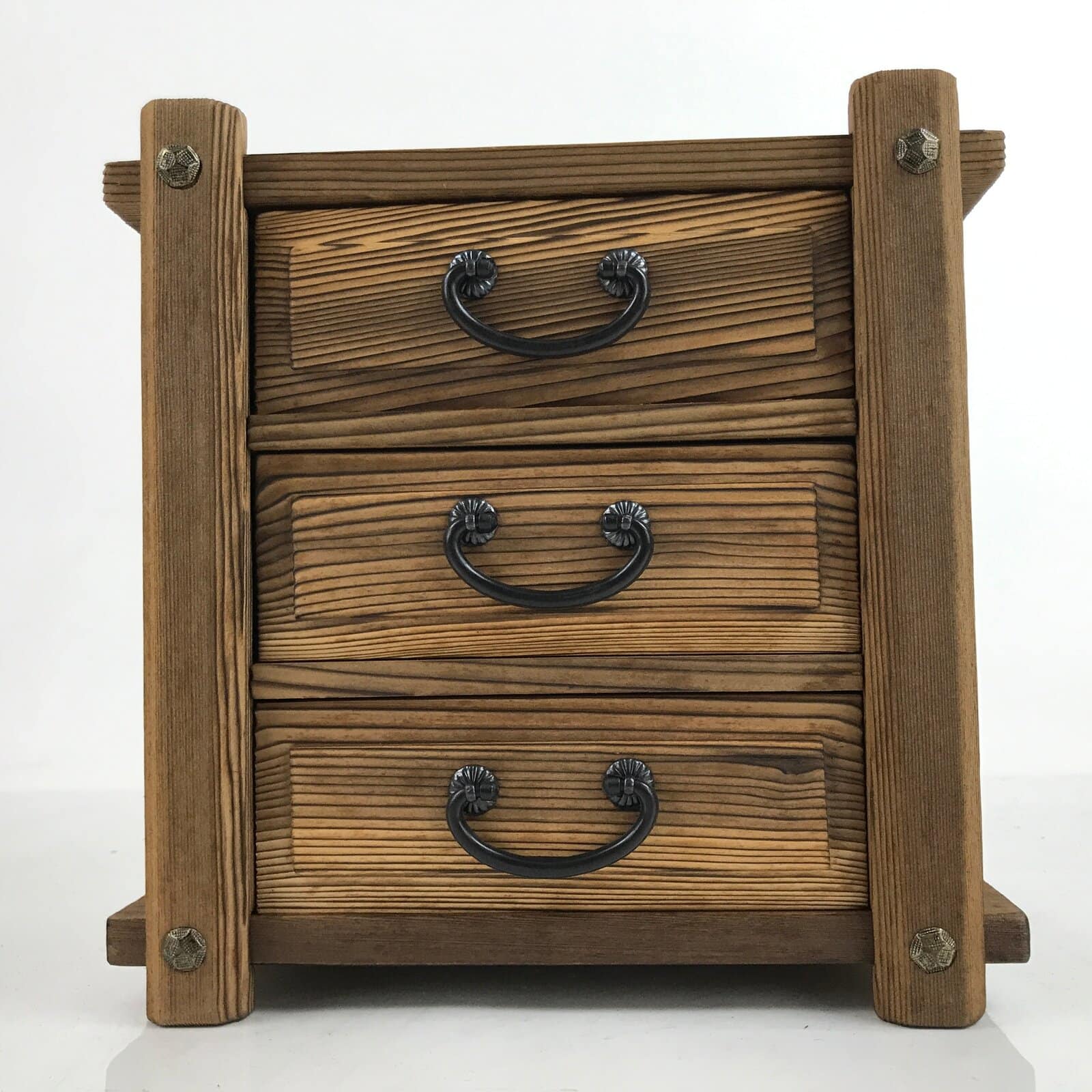 January 23, 2026Japanese Rustic Wood Tansu Storage Chest Vtg Haribako Trinket Box 3 Drawer T393