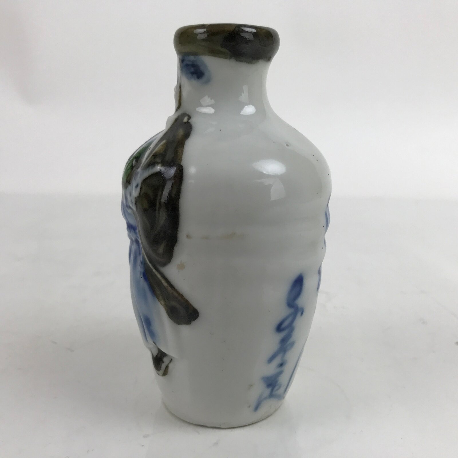 January 23, 2026Japanese Ceramic Sake Bottle Tokkuri Vtg 3D Samurai Calligraphy White Blue TS727