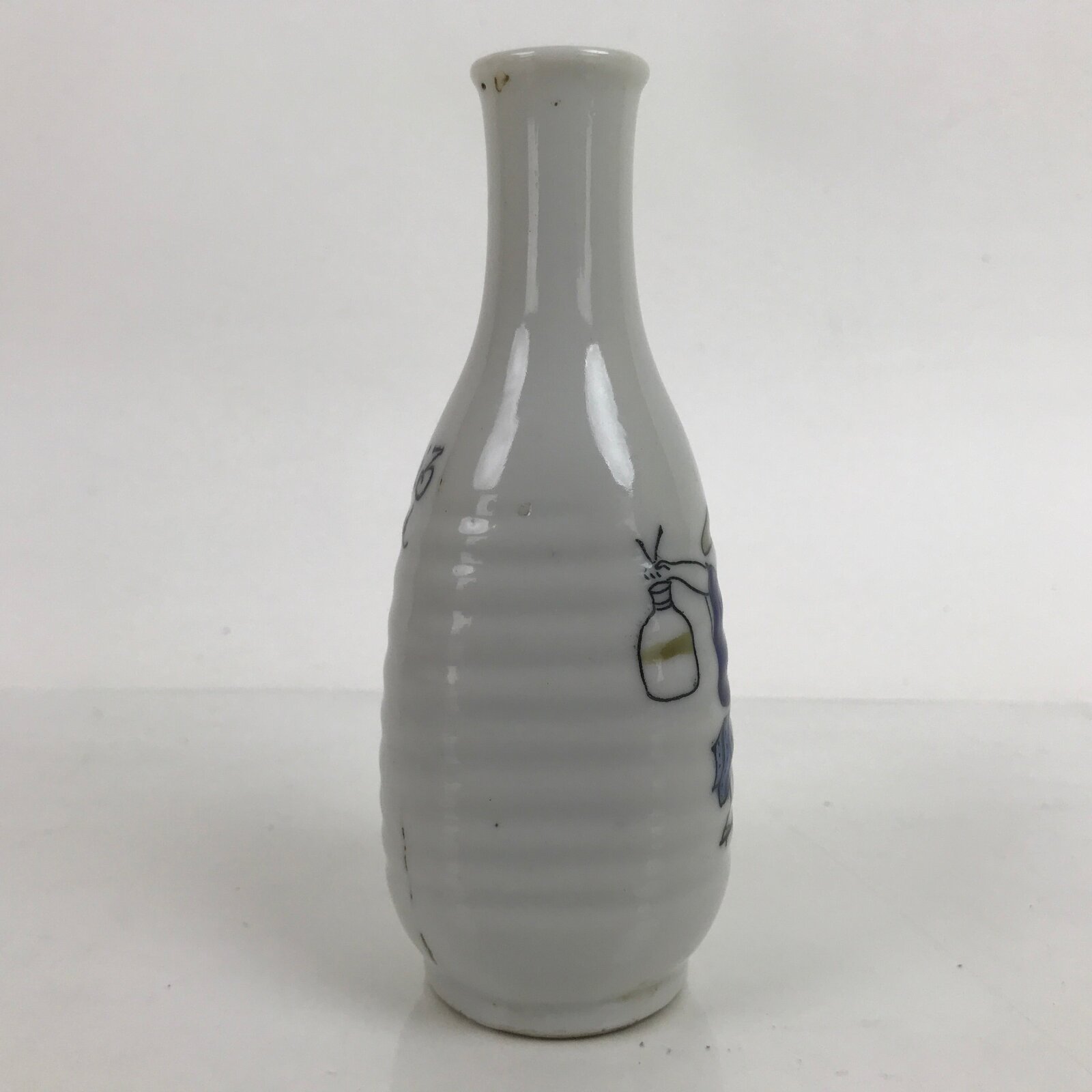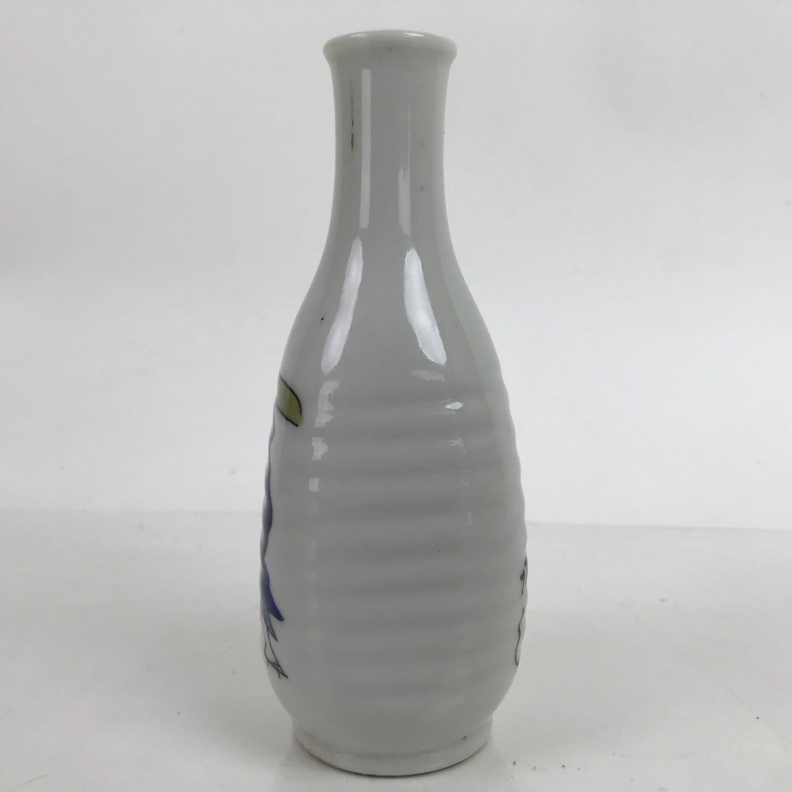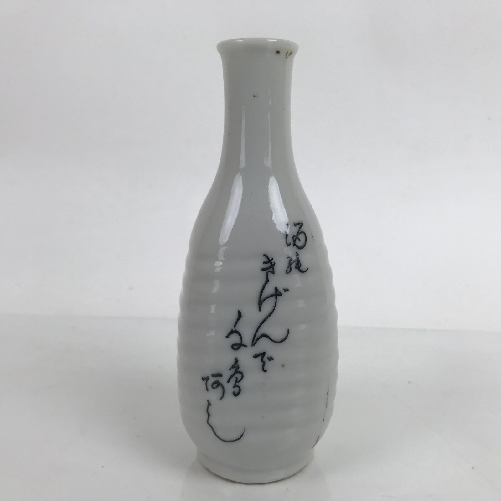 Japanese Porcelain Sake Bottle Tokkuri Vtg Wavy Grip Calligraphy White TS724