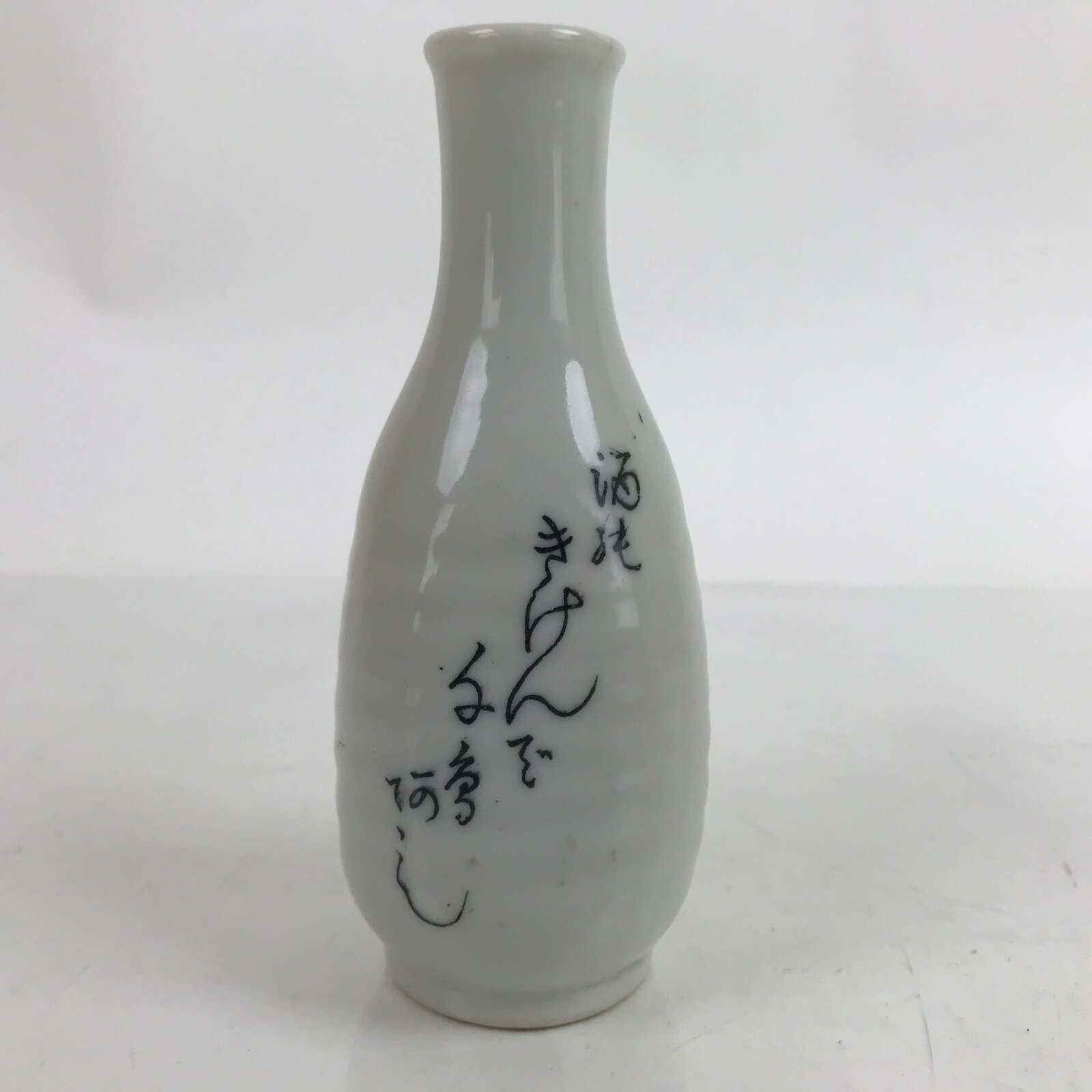 Japanese Ceramic Sake Bottle Tokkuri Vtg 3D Samurai Calligraphy White Blue TS727