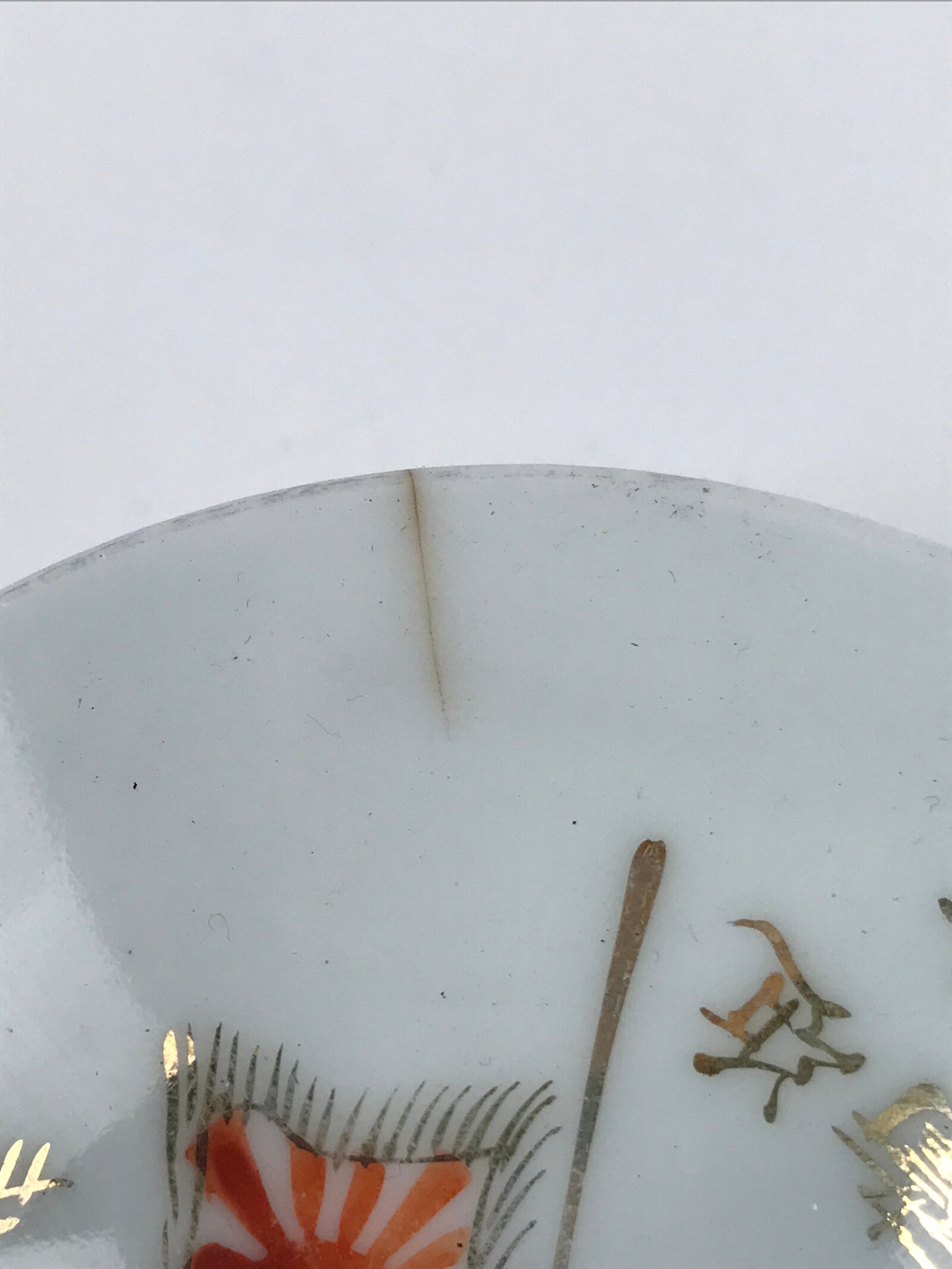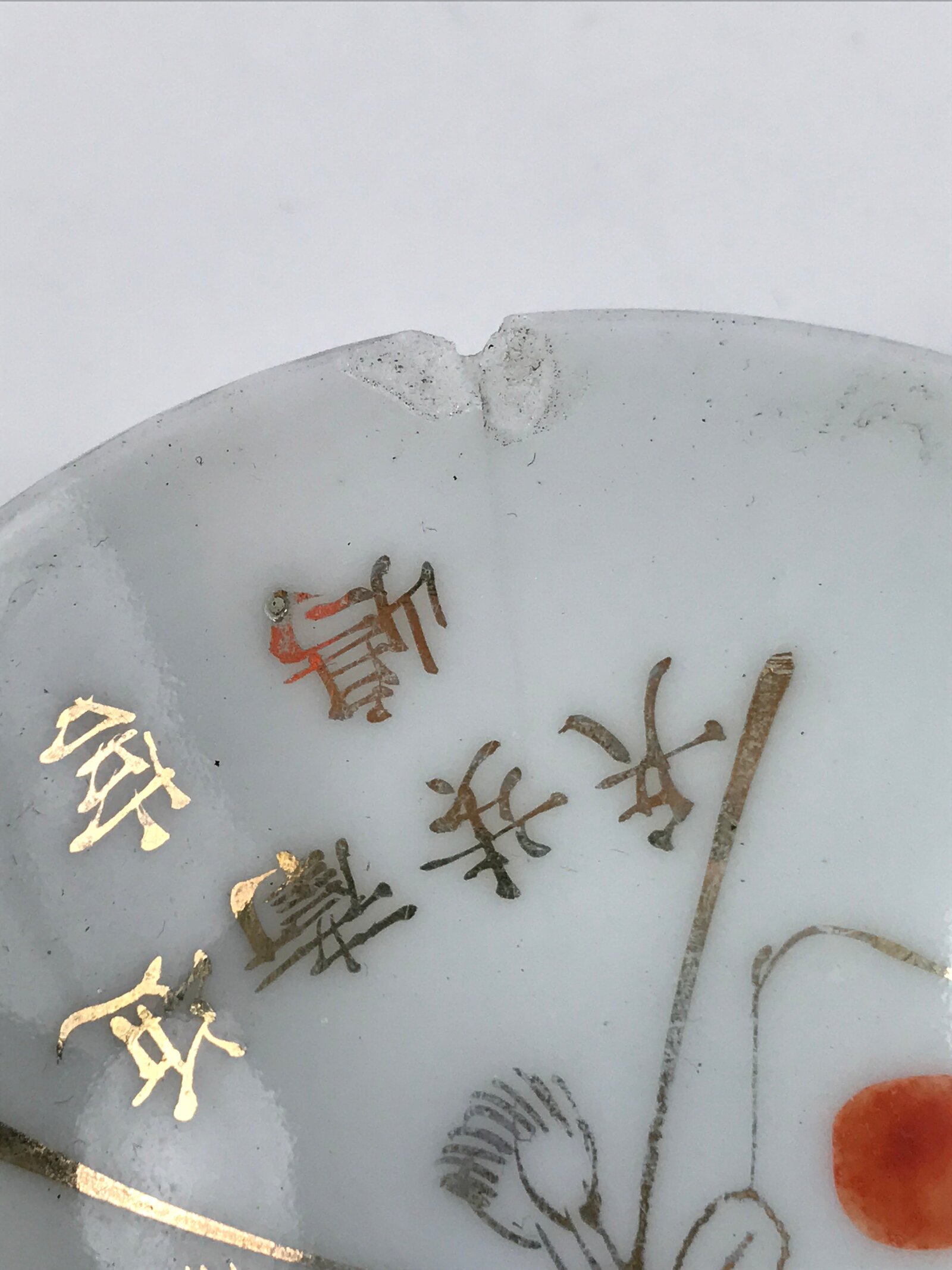 - Good condition considering age. Chip on the edge. Cracks. Wear and tear due to age. Please see the photos carefully.