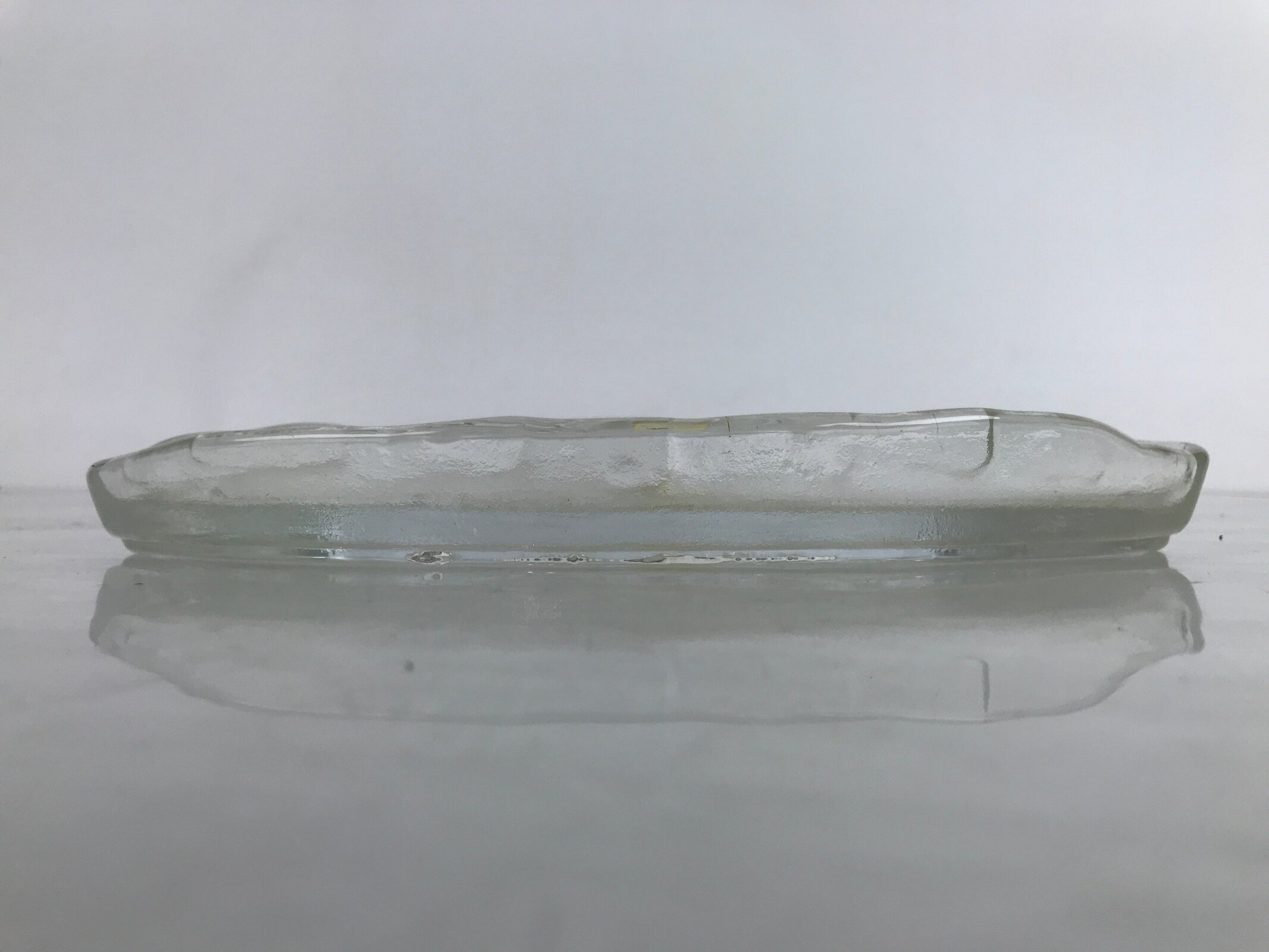 Japanese Sasaki Crystal Glass Sashimi Plate Kozara Vtg Fan Shape Plant Clear Y79