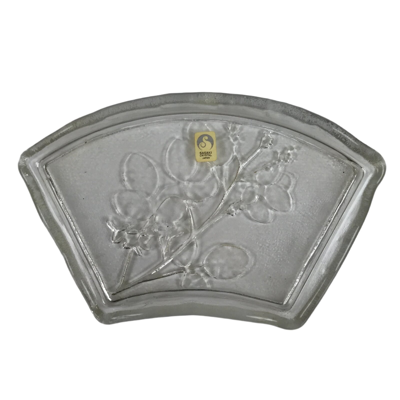Japanese Sasaki Crystal Glass Sashimi Plate Kozara Vtg Fan Shape Plant Clear Y82