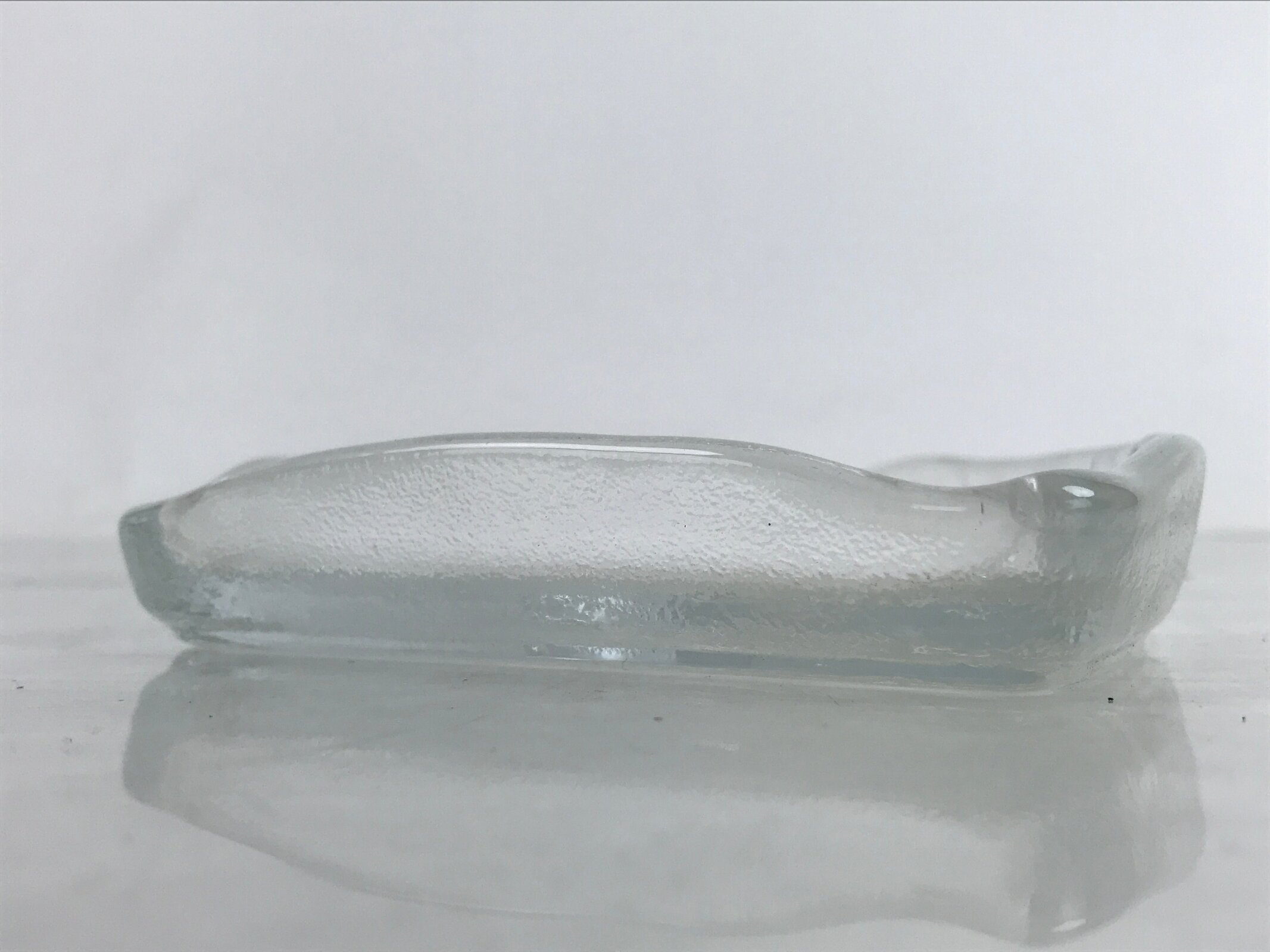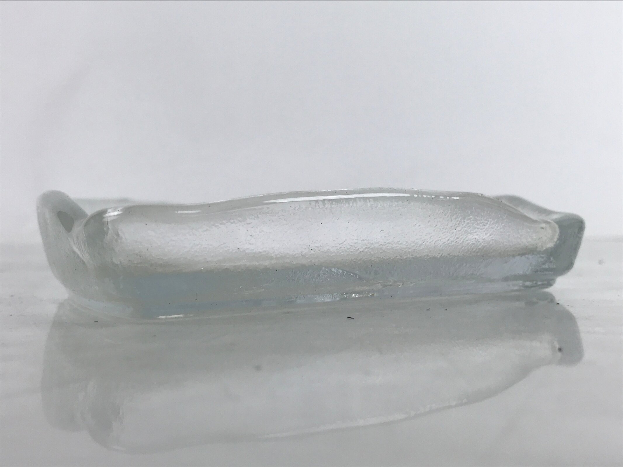 Japanese Sasaki Crystal Glass Sashimi Plate Kozara Vtg Fan Shape Plant Clear Y90