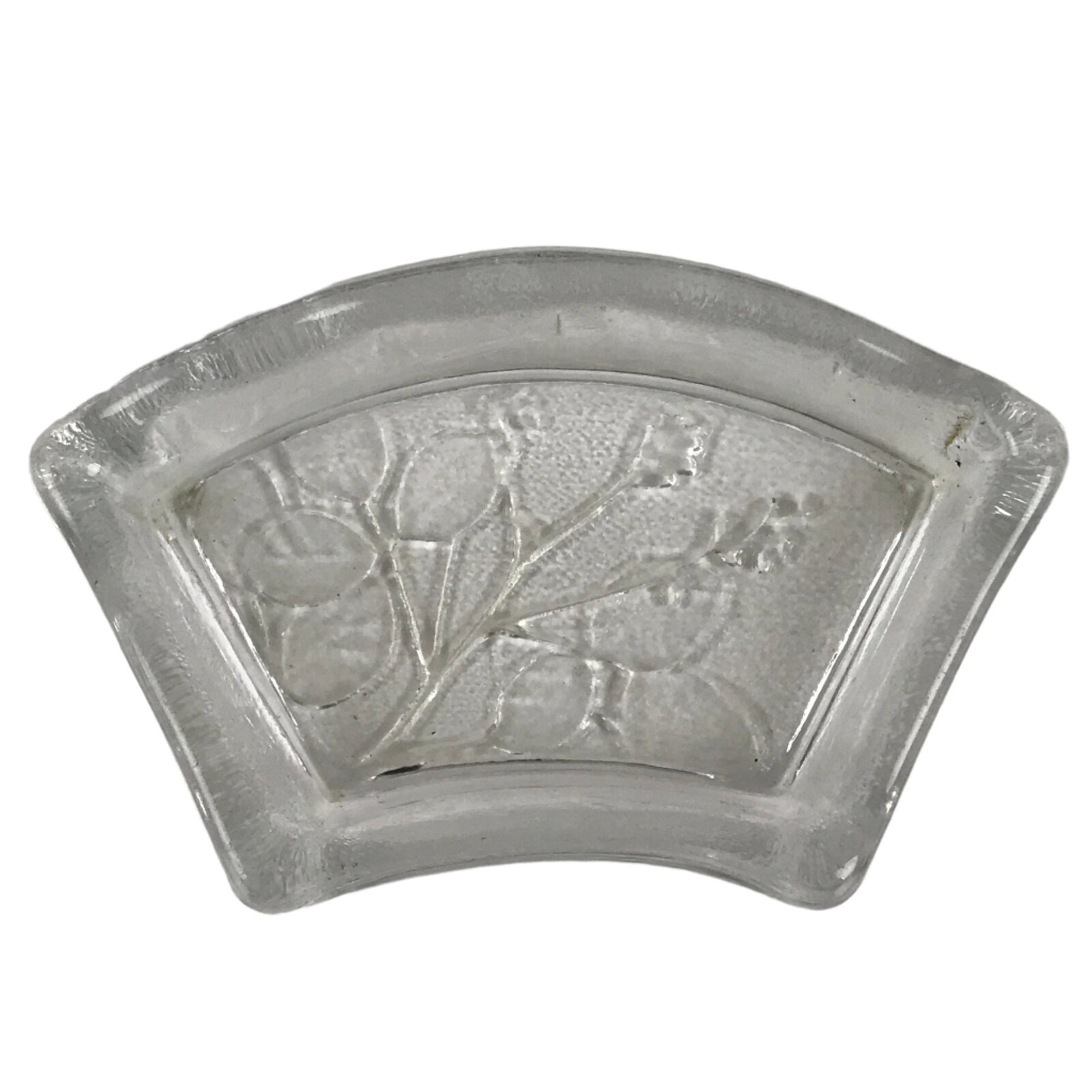 Japanese Sasaki Crystal Glass Small Serving Dish Vtg Fan Shape Plant Clear Y75