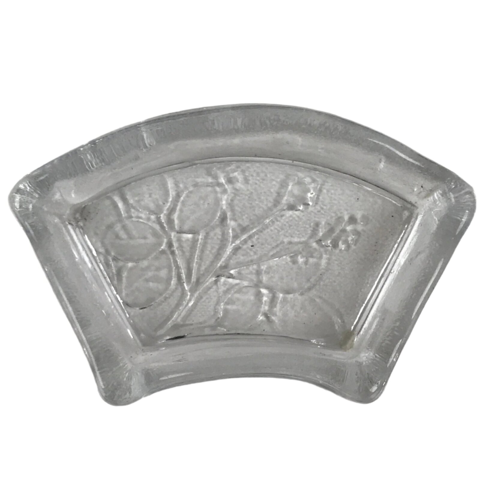 Japanese Sasaki Crystal Glass Small Serving Dish Vtg Fan Shape Plant Clear Y76