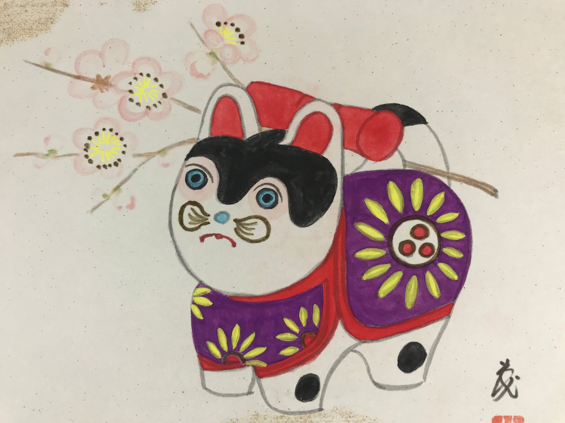 This is a vintage Japanese Shikishi paper (Artboard) painted cat clay bell. There are three basic types of shikishi paper—calligraphy (poem, haiku) only, calligraphy plus pictures, and pictures only. Since the Heian period, people have been writing waka and haiku on Shikishi paper (various sizes), but in the Meiji period, they started using paper of the current size. Recently, Shikishi paper is being used as paper to write autographs of celebrities.