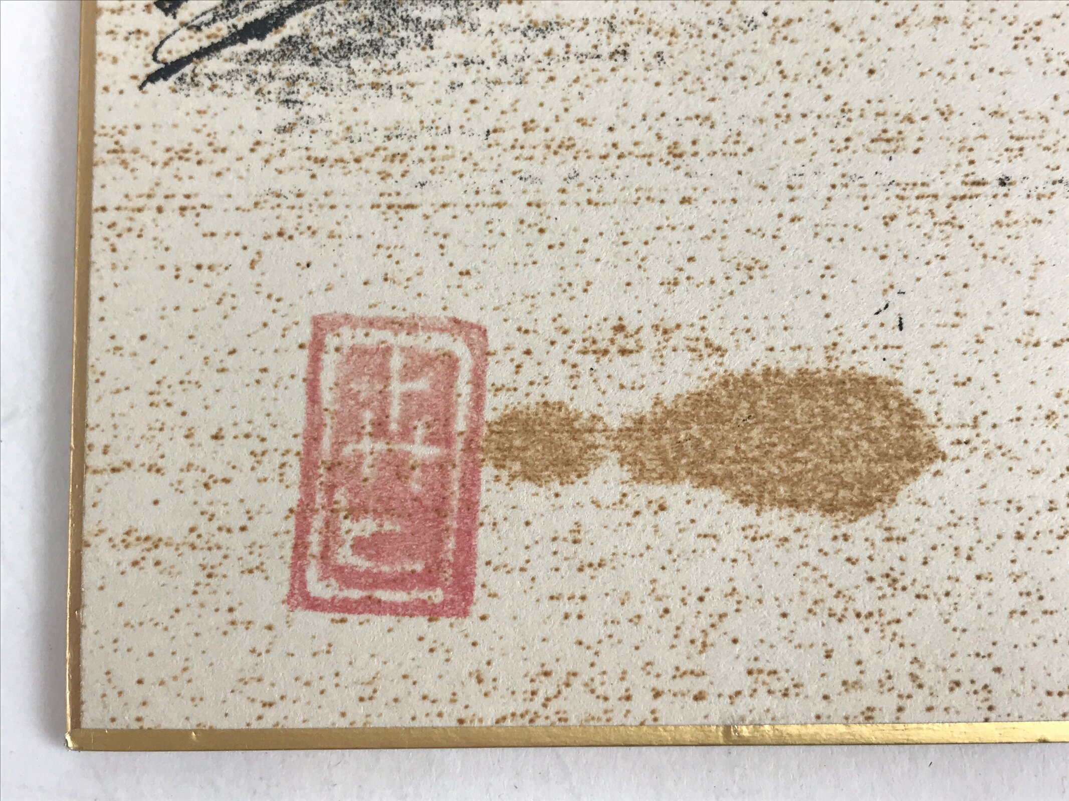 - Brown dots scattered on the paper, whether they are stains or designs