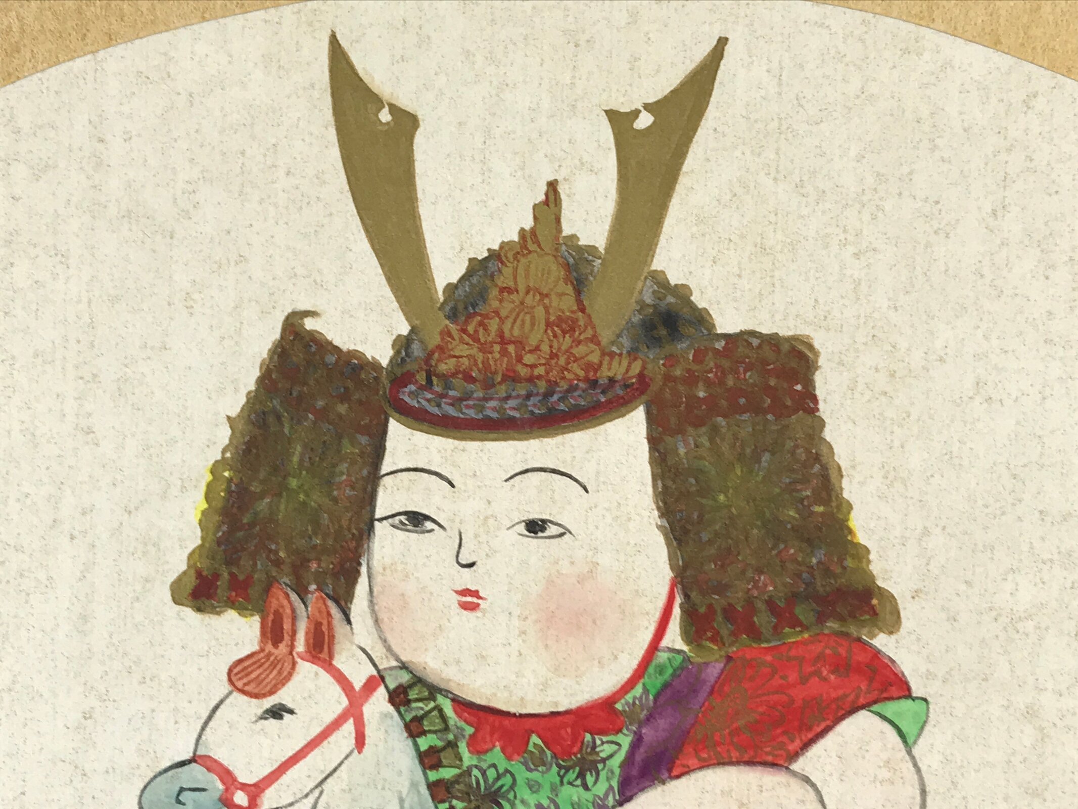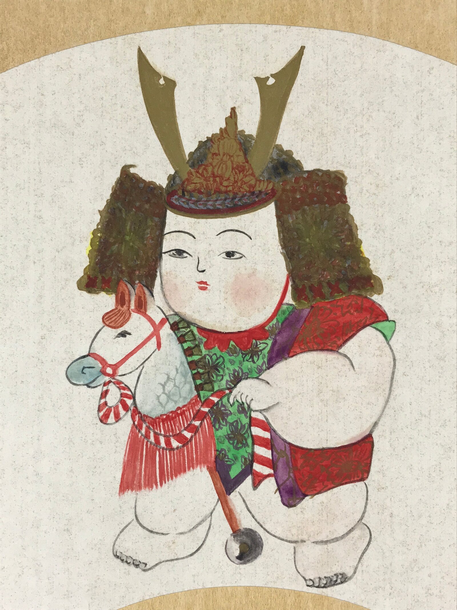 January 21, 2026Japanese Shikishi Art Board Painting Young Boy Playing Kabuto Helmet Horse A555
