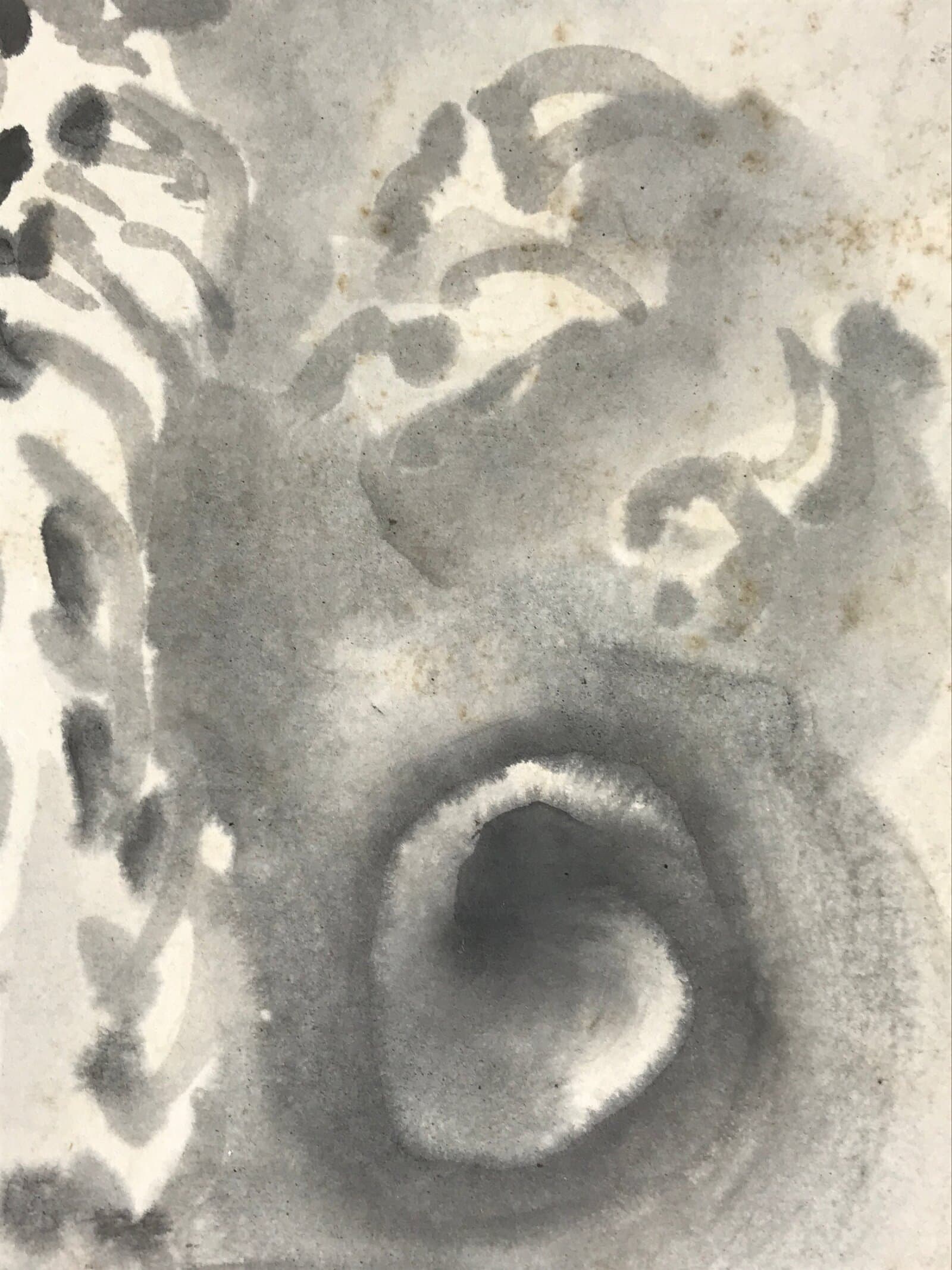 This item is a vintage shikishi art board. It features a hand-painted dragon. It is painted with black ink in a monochrome style using gray tones. This shikishi art board is titled and signed.