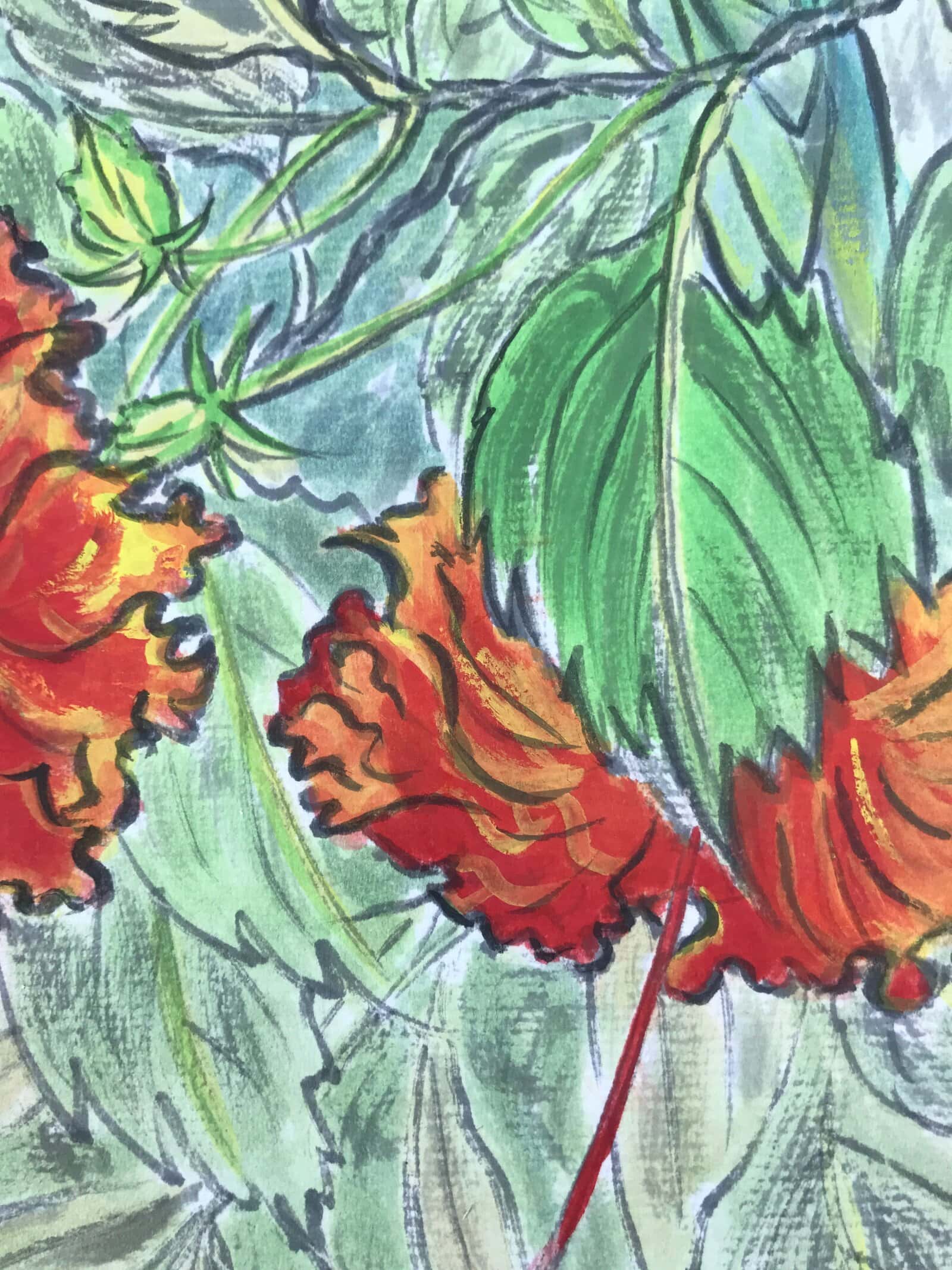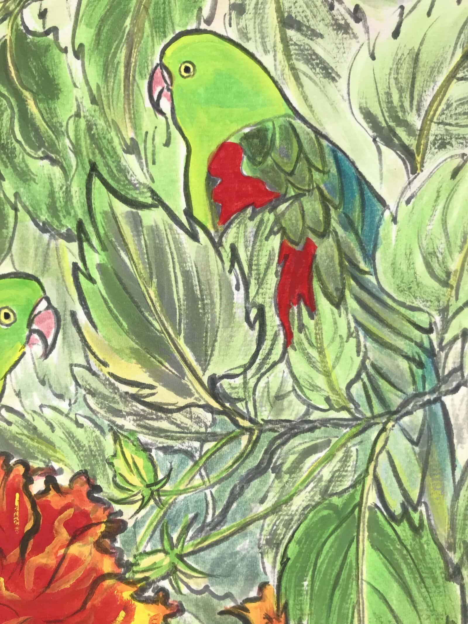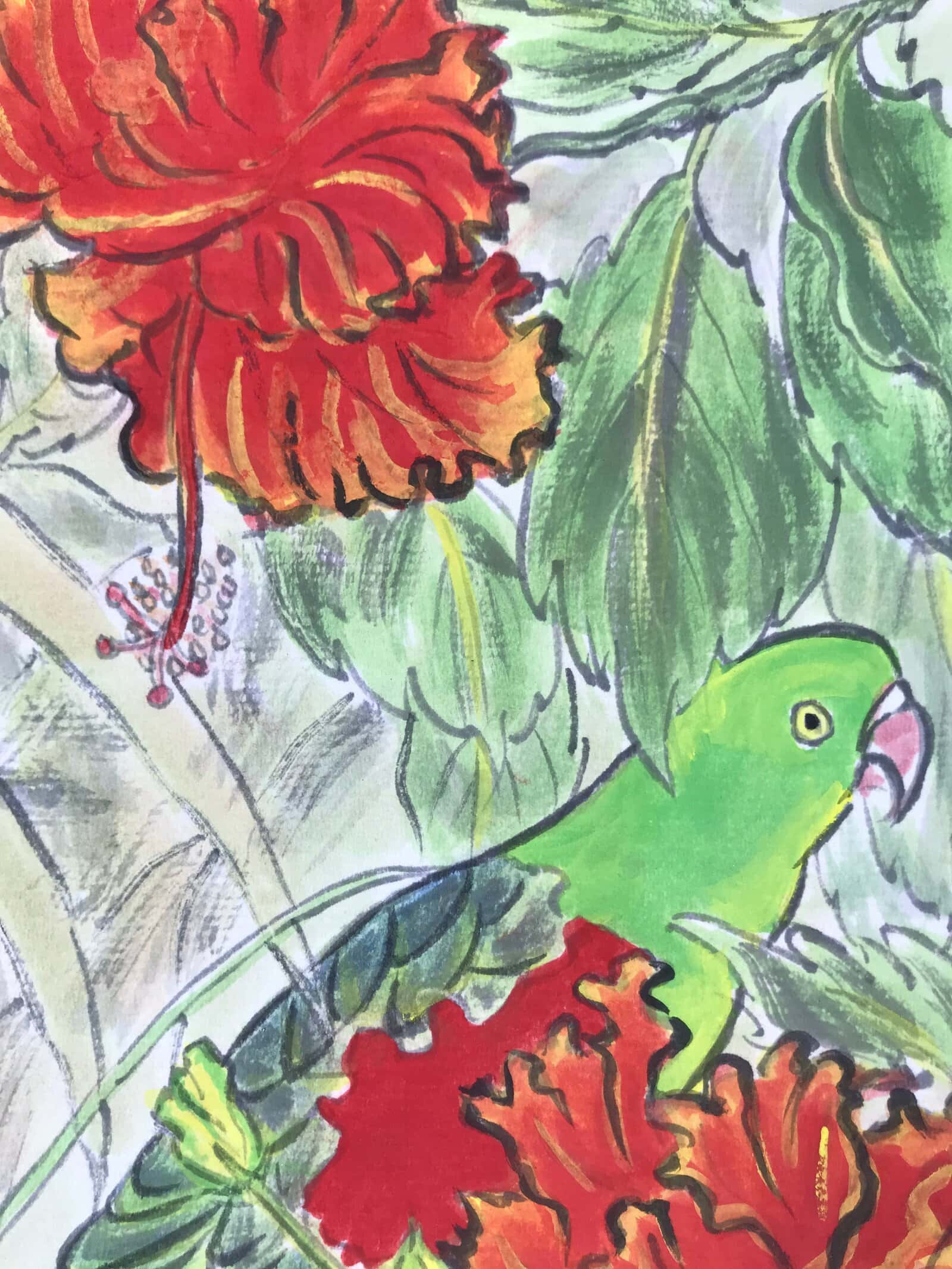 January 21, 2026Japanese Shikishi Art Board Painting Vtg Green Parakeet Parrot Red Hibiscus A655