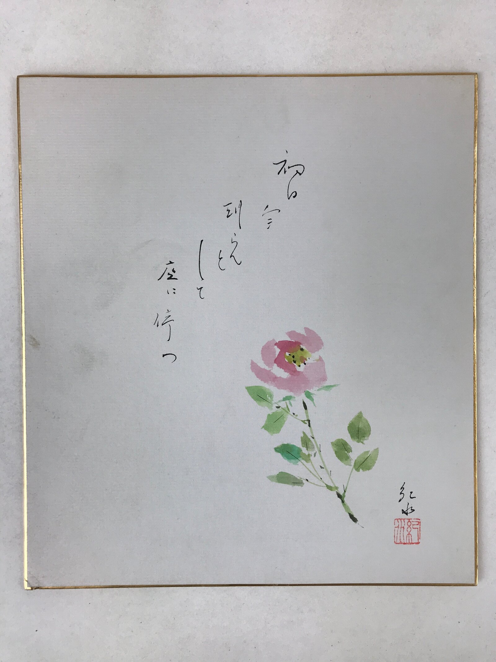 January 21, 2026Japanese Shikishi Art Board Painting Pink Peony Flower With Black Poem A588